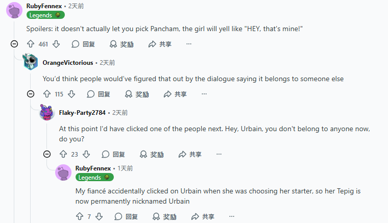 原本主角應該在菊草葉、暖暖豬與小鋸鱷三隻初始寶可夢之間做出選擇,準備迎接與頑皮熊貓的首次對戰;然而,部分玩家嘗試「叛逆」地選擇了對方的寶可夢,結果被當場吐槽。