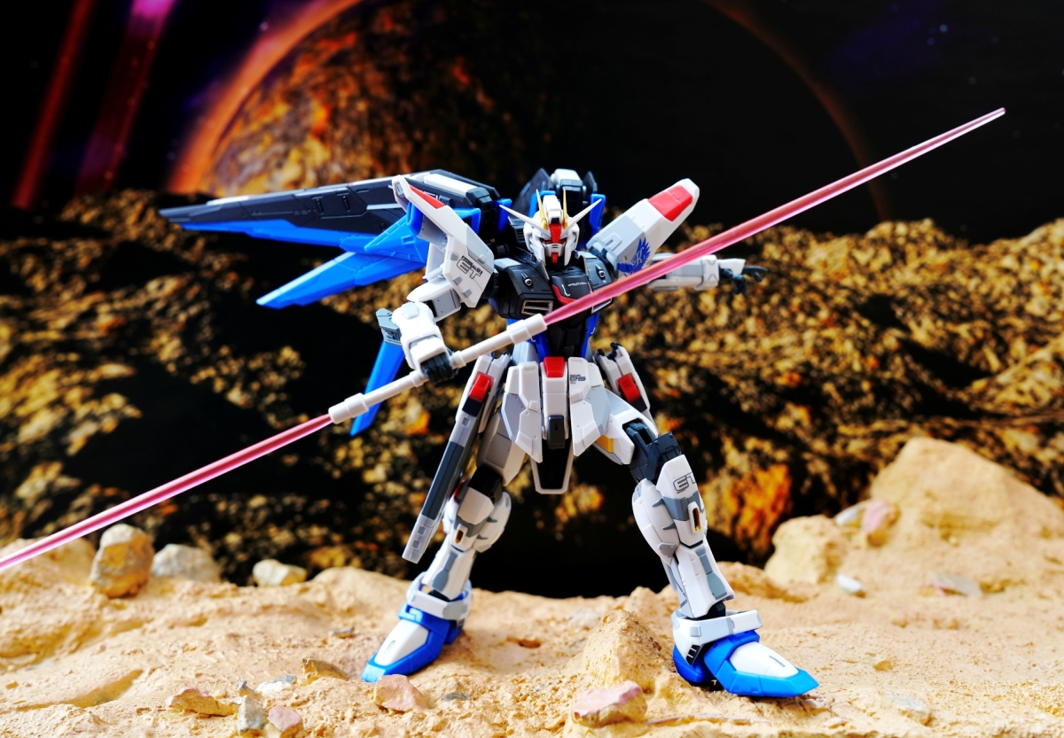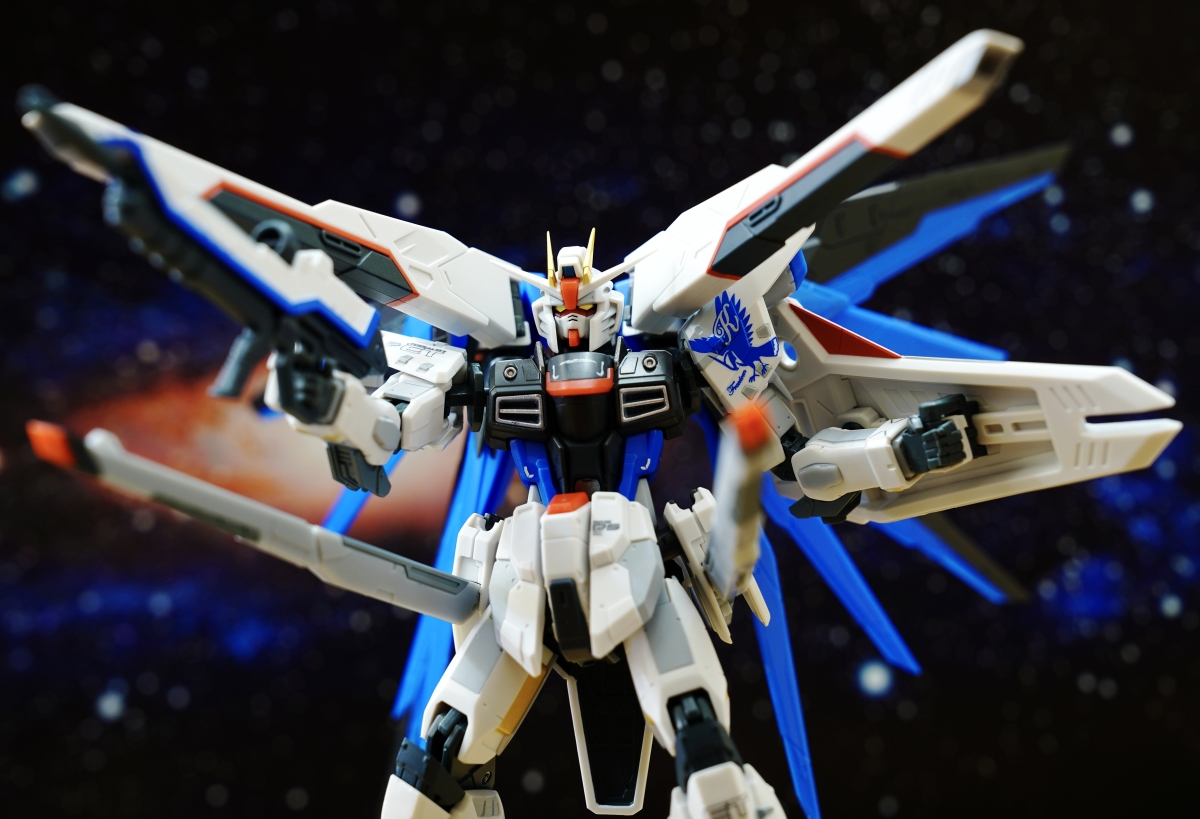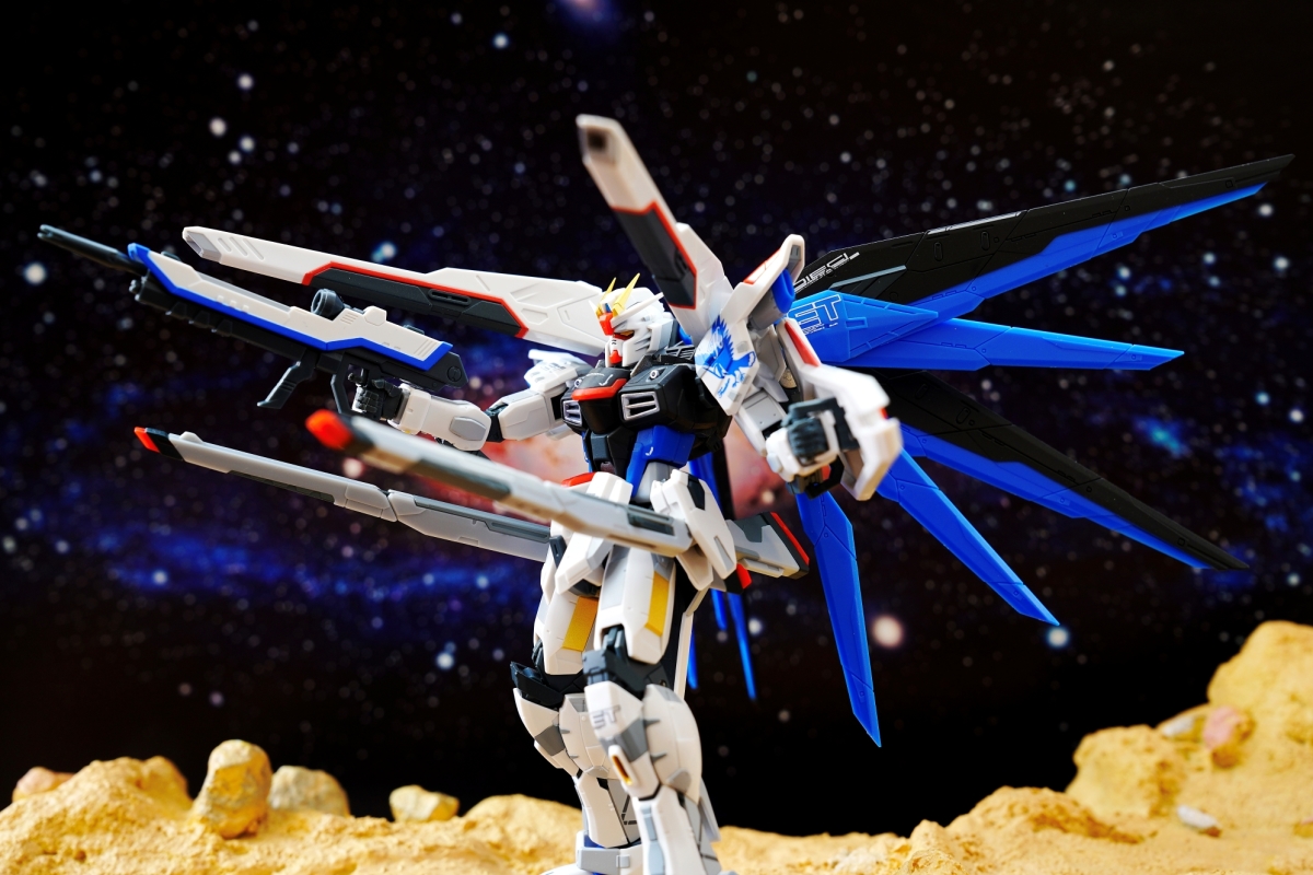 為紀念自由高達 THE LIFE-SIZED STATUE 在上海建成三週年,這次使用全新標誌設計再次商品化。以左肩上基拉的個人標誌為中心,配上新的標誌再次登場。細緻的標示與色彩表現都濃縮於約 140mm 的體型中。還使用了 ROBOT SPIRITS 獨有的可動表現,讓機體能重現自由高達的代表動作。