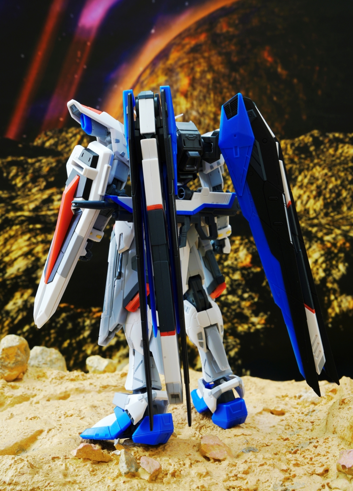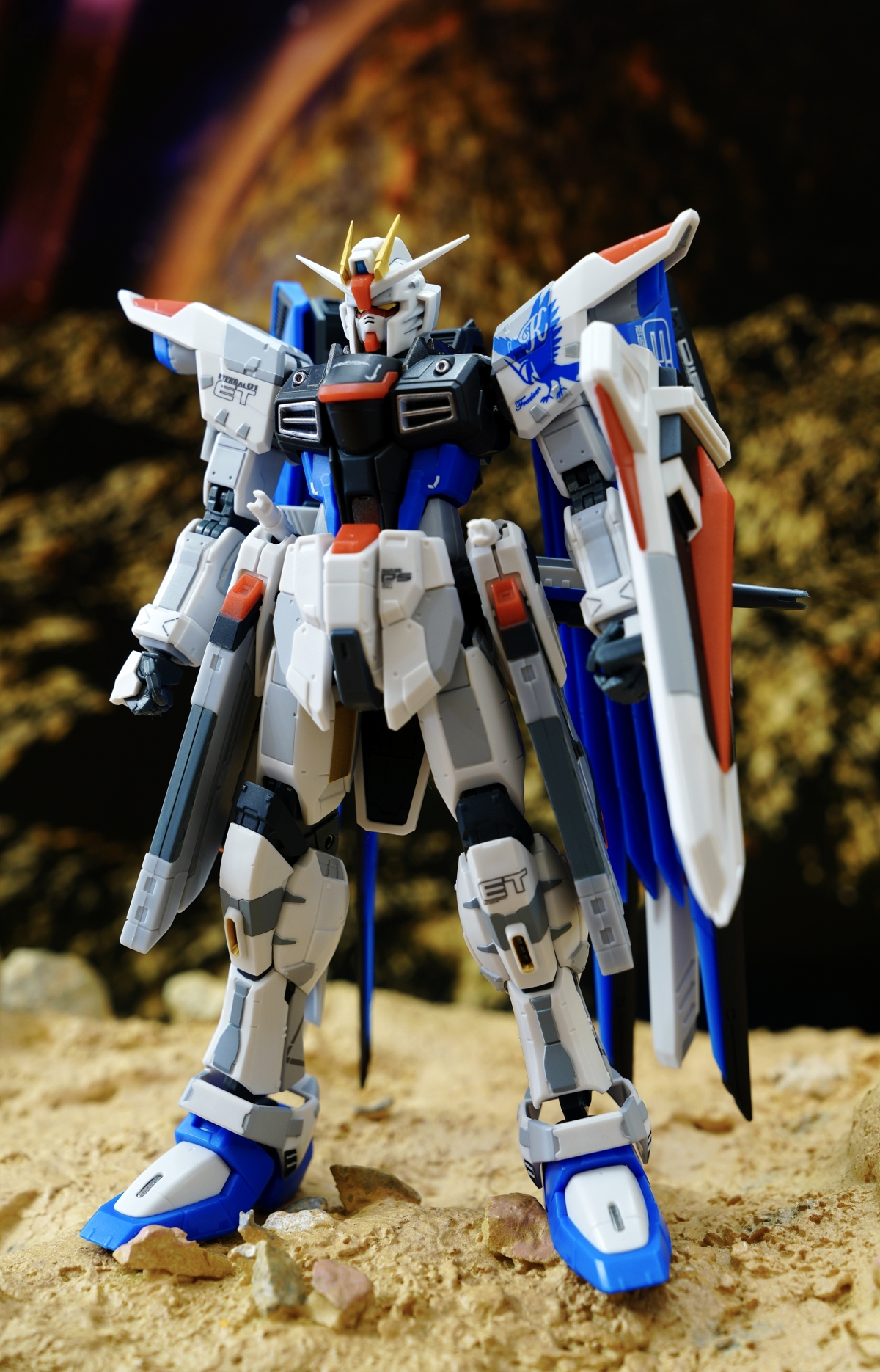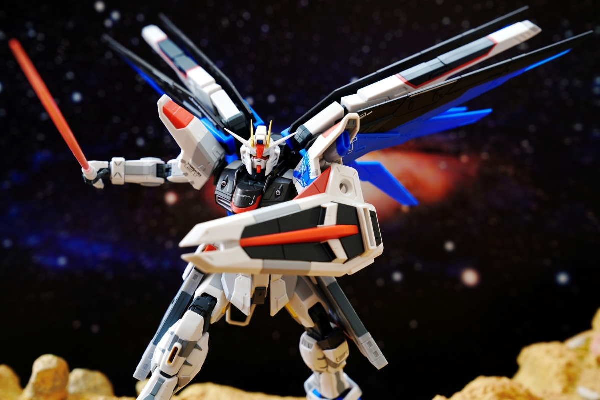 為紀念自由高達 THE LIFE-SIZED STATUE 在上海建成三週年,這次使用全新標誌設計再次商品化。以左肩上基拉的個人標誌為中心,配上新的標誌再次登場。細緻的標示與色彩表現都濃縮於約 140mm 的體型中。還使用了 ROBOT SPIRITS 獨有的可動表現,讓機體能重現自由高達的代表動作。