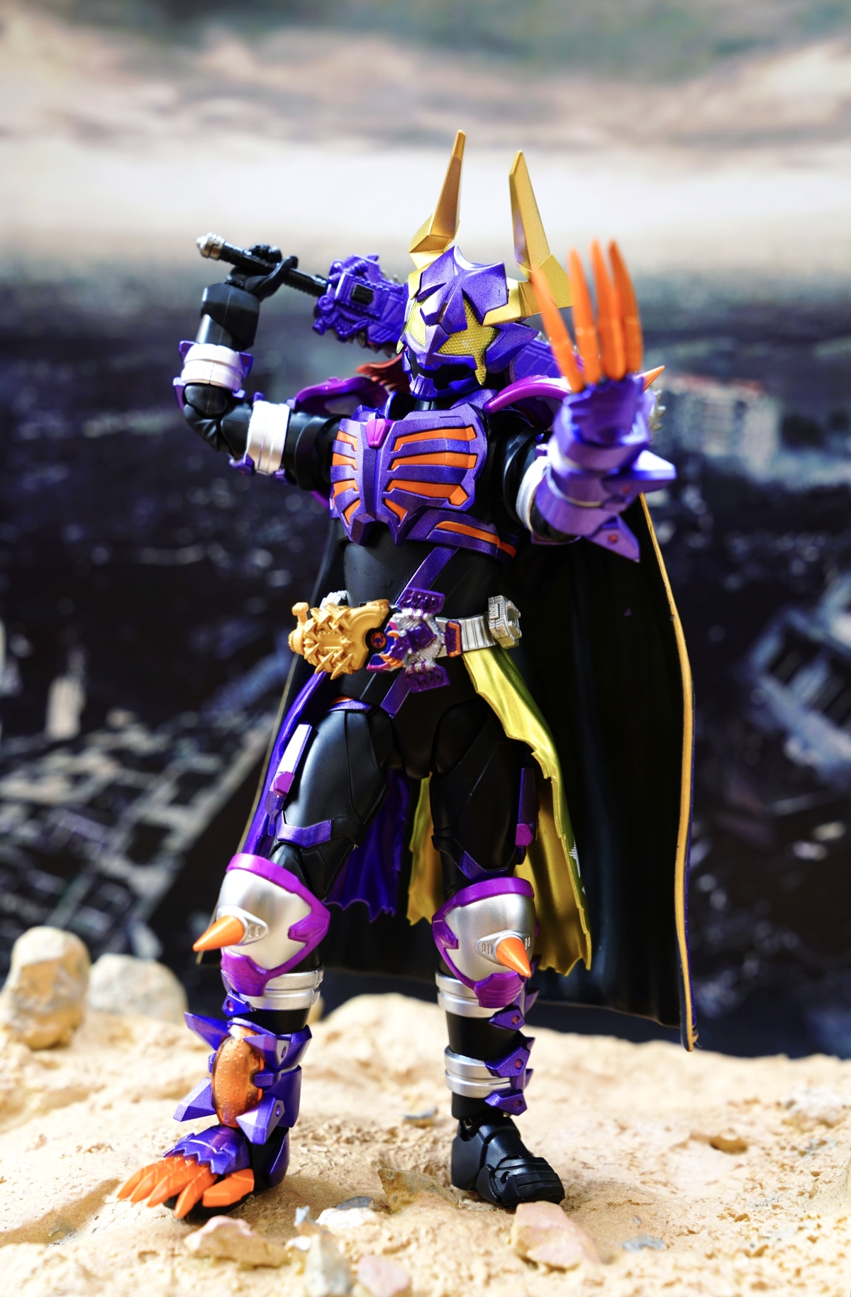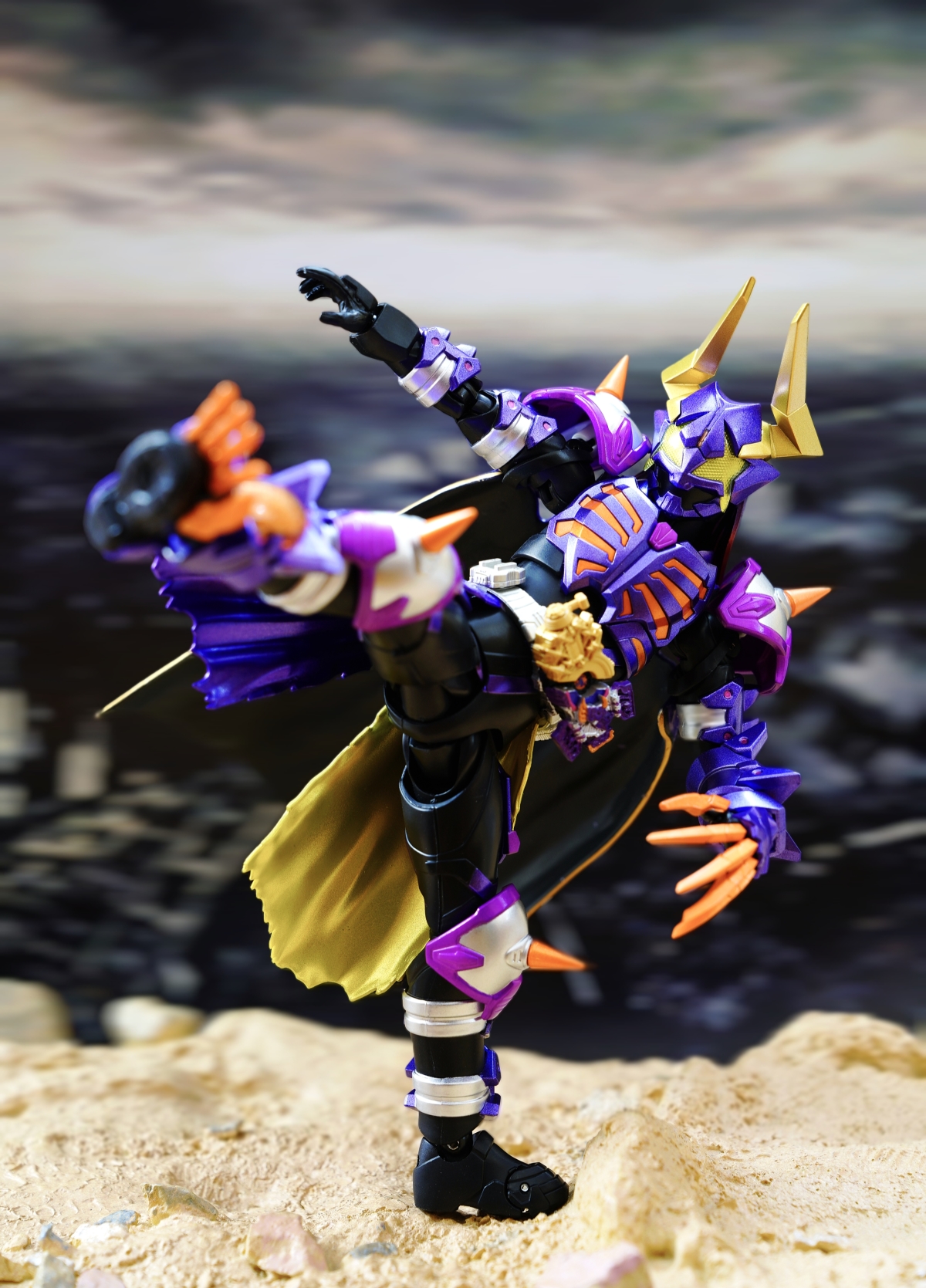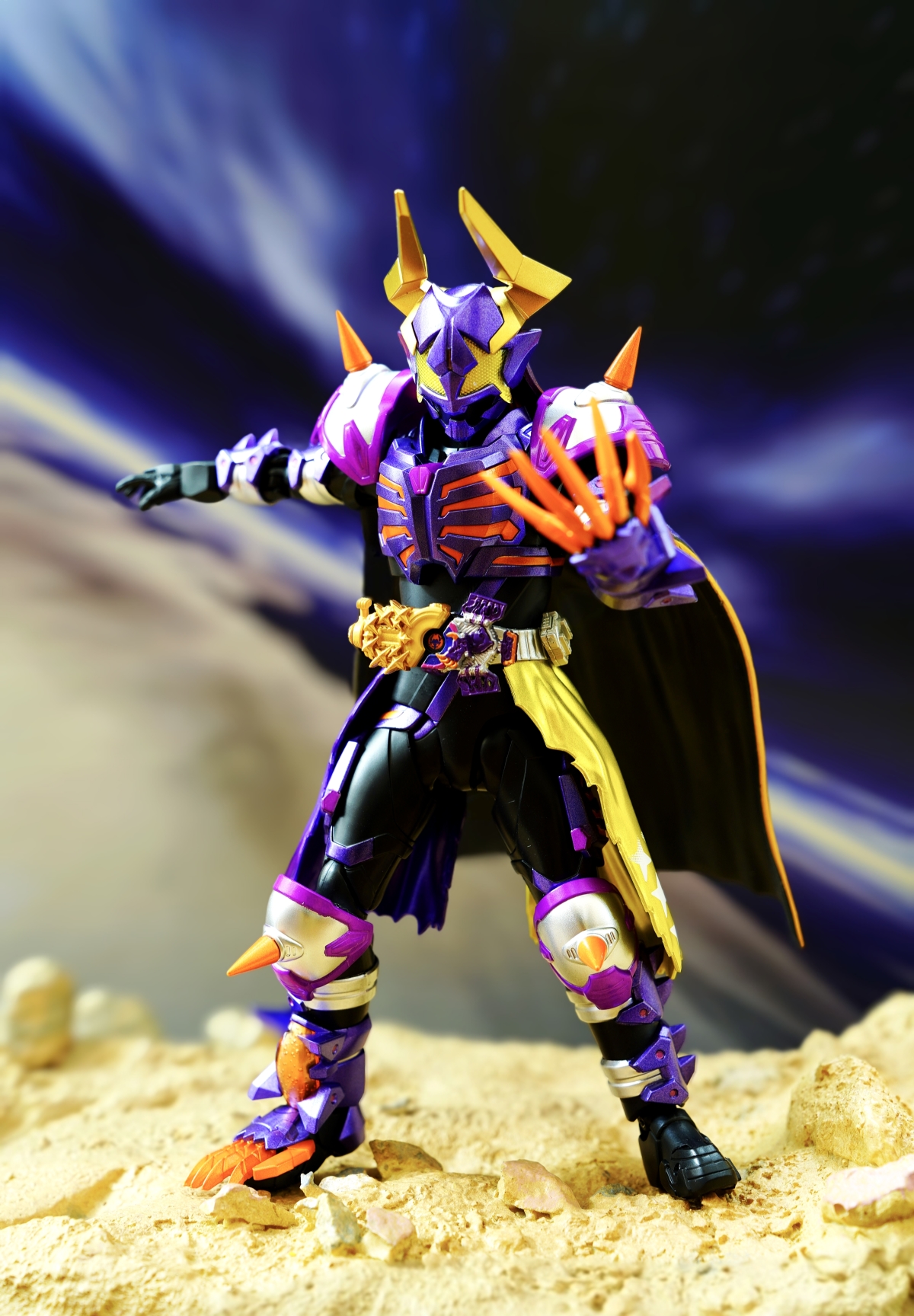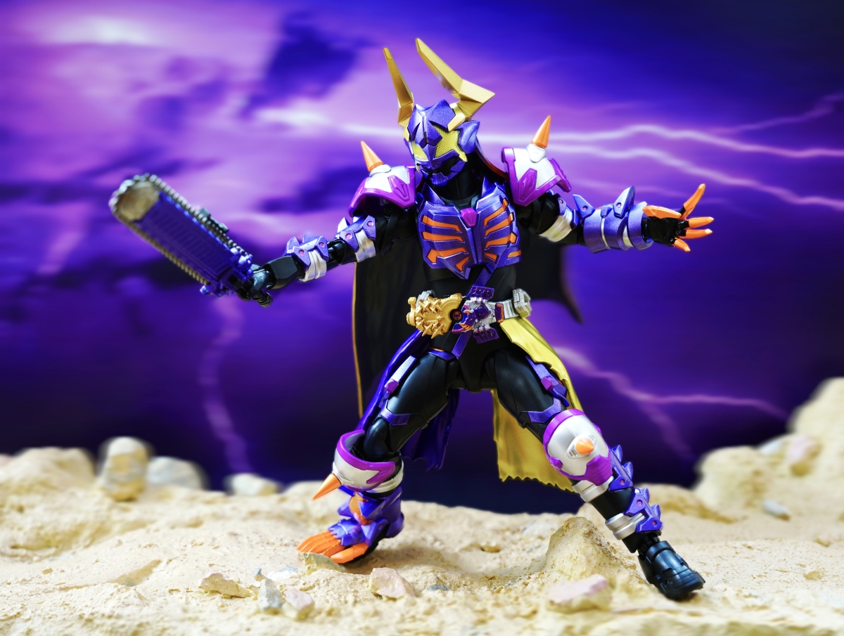 頭上閃閃發光的黃金犄角「眾神之角」,以及紫色「眾神之牆」採用全新造形。「眾神斗篷」採用軟身配件,加上底部可動,可重現隨風飄揚的狀態!此外,更附上幪面超人 Nadge Sparrow、幪面超人 Na-Go、幪面超人 Hakubi 的破裂的 ID 核心」。可重現劇中在擊倒全部幪面超人的遊戲——「Desire Royale」中,將幪面超人一個接一個地踢出局,令人畏懼的場面。