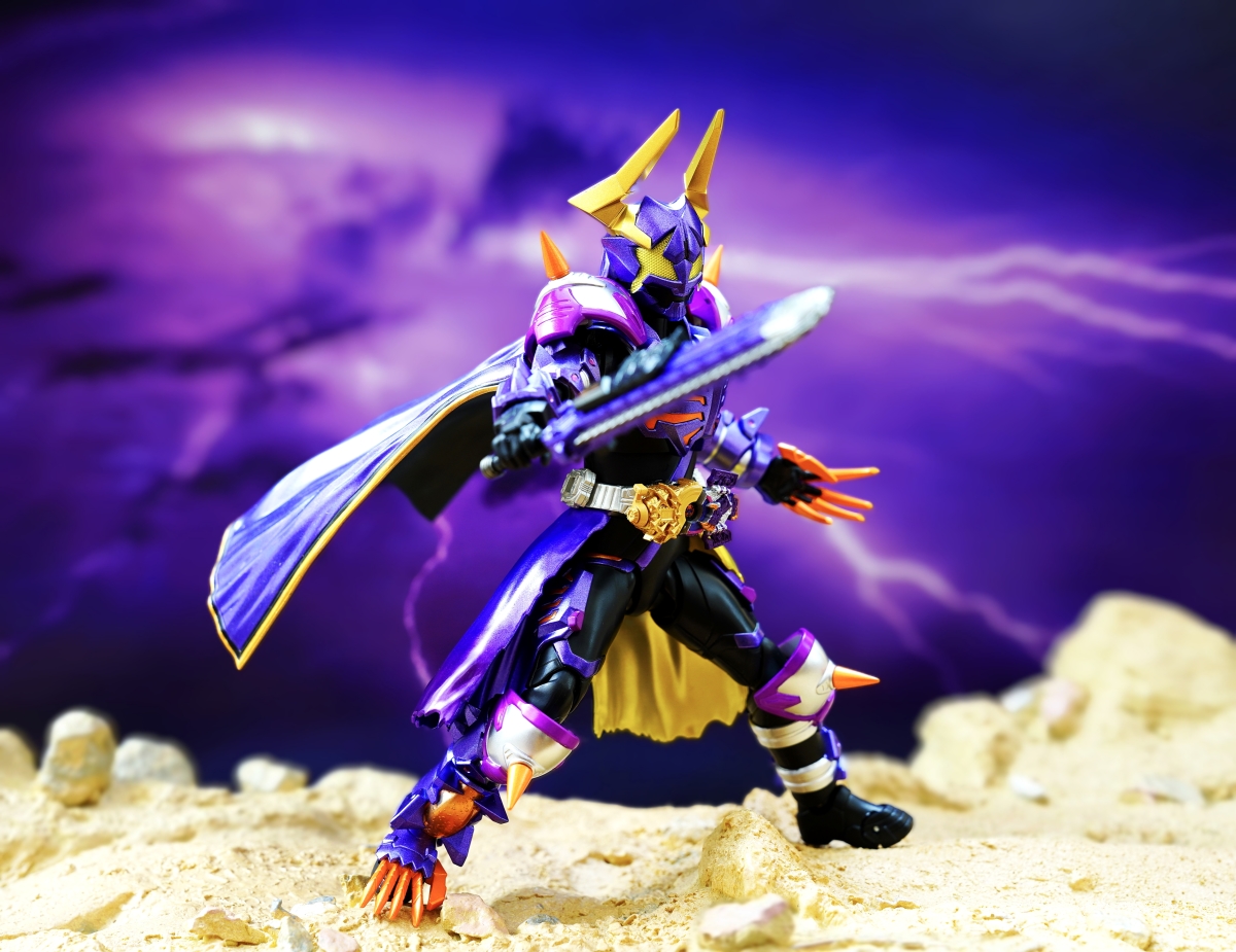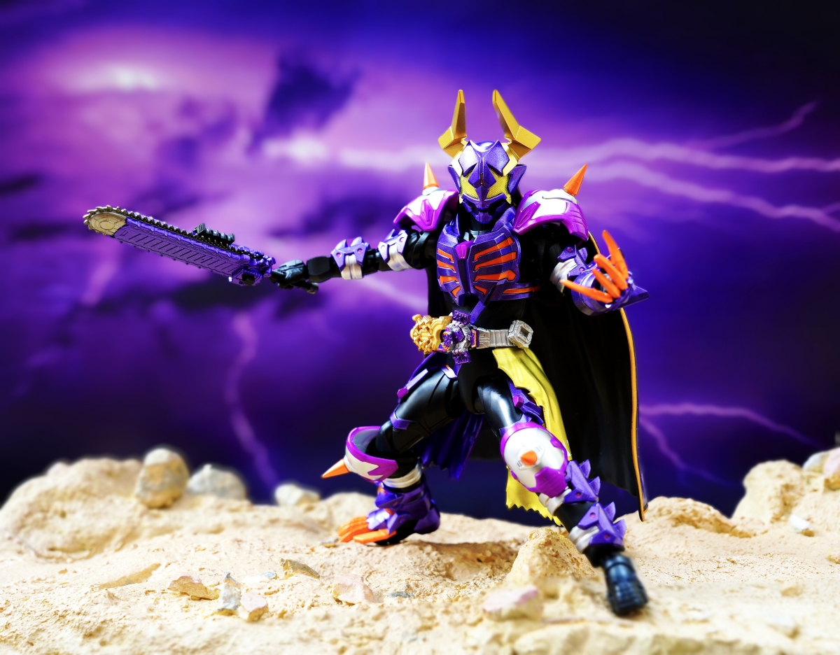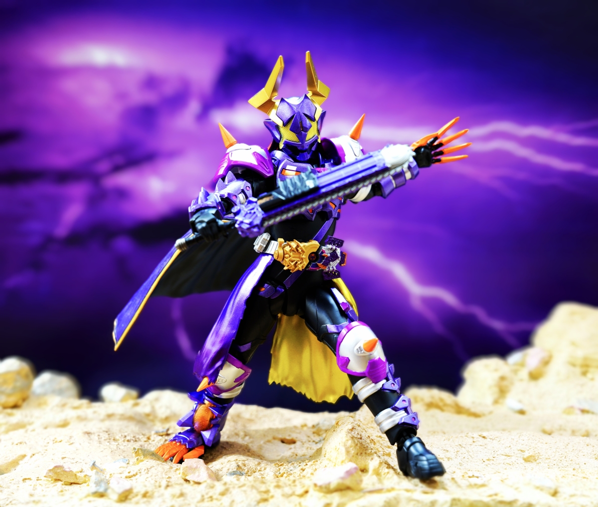 頭上閃閃發光的黃金犄角「眾神之角」,以及紫色「眾神之牆」採用全新造形。「眾神斗篷」採用軟身配件,加上底部可動,可重現隨風飄揚的狀態!此外,更附上幪面超人 Nadge Sparrow、幪面超人 Na-Go、幪面超人 Hakubi 的破裂的 ID 核心」。可重現劇中在擊倒全部幪面超人的遊戲——「Desire Royale」中,將幪面超人一個接一個地踢出局,令人畏懼的場面。