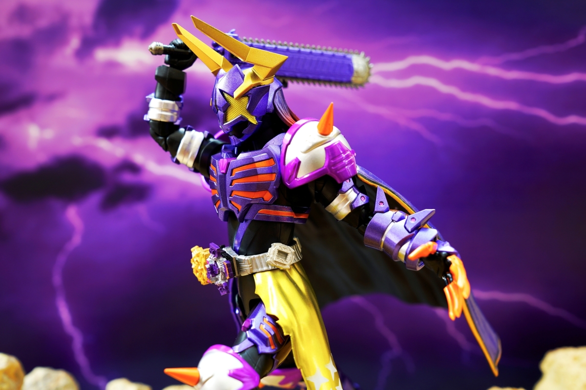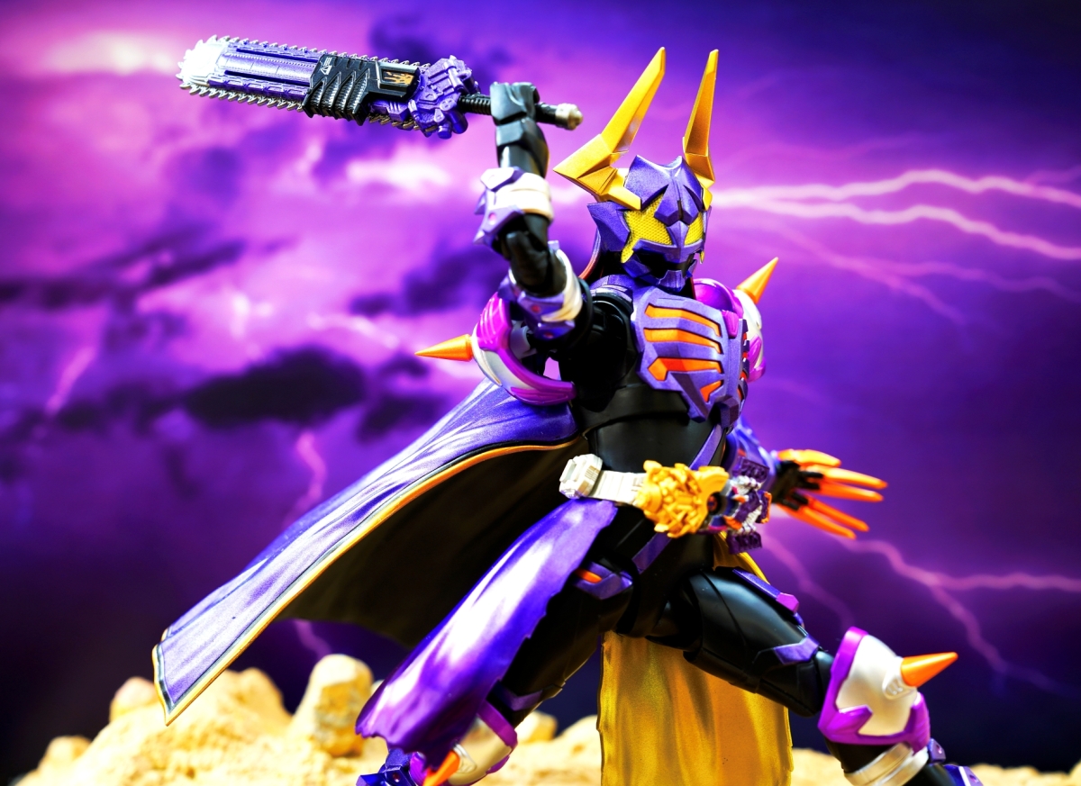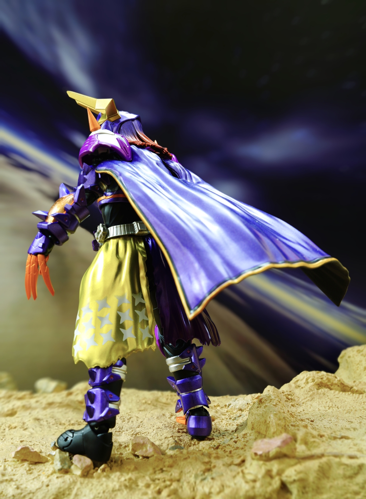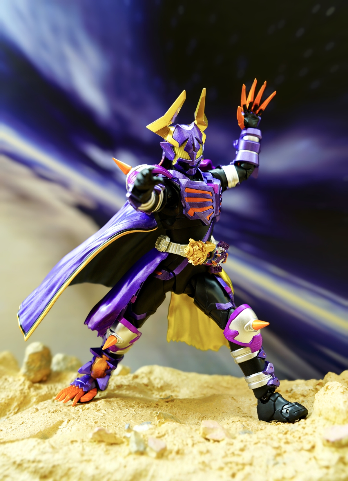 頭上閃閃發光的黃金犄角「眾神之角」,以及紫色「眾神之牆」採用全新造形。「眾神斗篷」採用軟身配件,加上底部可動,可重現隨風飄揚的狀態!此外,更附上幪面超人 Nadge Sparrow、幪面超人 Na-Go、幪面超人 Hakubi 的破裂的 ID 核心」。可重現劇中在擊倒全部幪面超人的遊戲——「Desire Royale」中,將幪面超人一個接一個地踢出局,令人畏懼的場面。