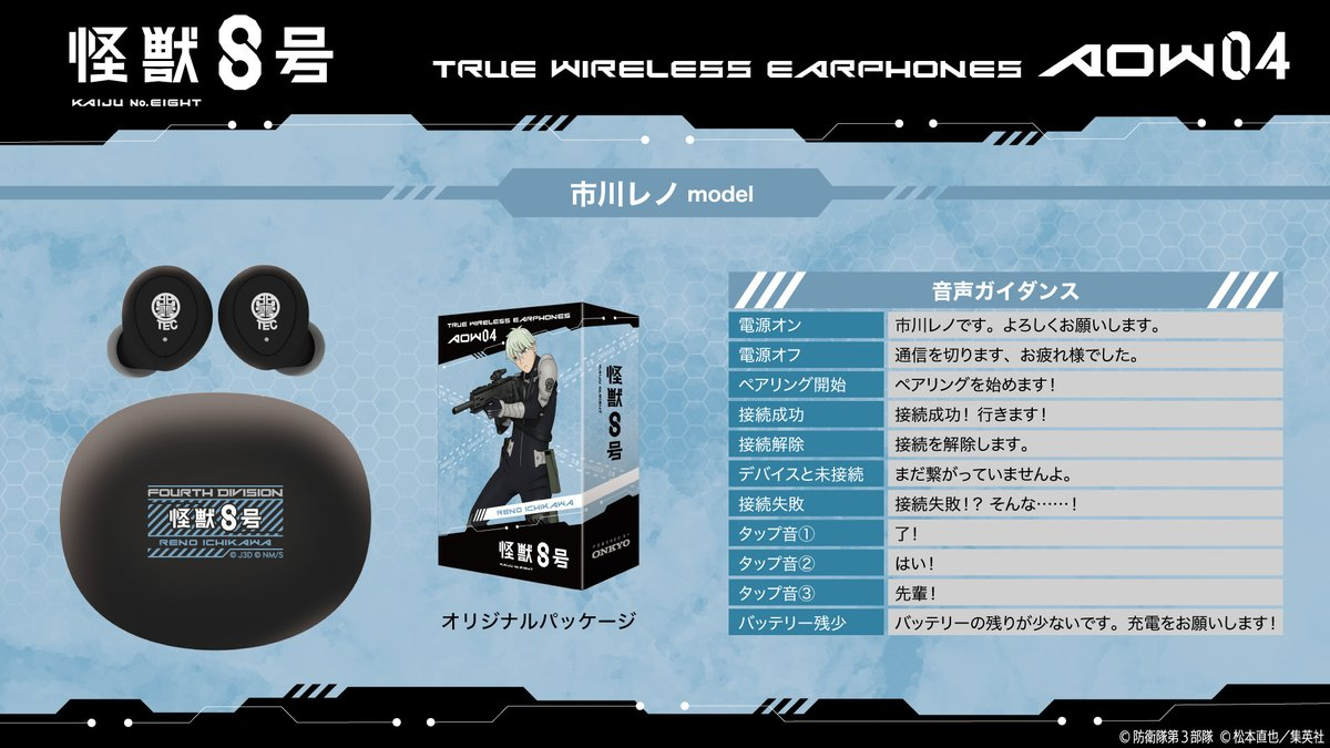 近日宣布與今年7月播出第二季動畫的《怪獸8號》合作,推出聯名款的無線藍牙耳機,以四位人氣角色為形象設計。售價為18,000日圓,目前已可於 ONKYO 官網訂購。