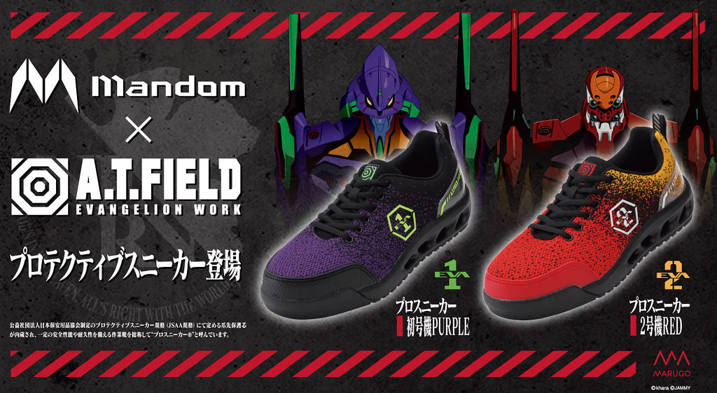 近日宣布日本防滑工作鞋品牌 Mandom 合作,推出第三彈聯名工作安全鞋鞋款,分為初號機與二號機配色。售價為6,600日圓,目前可於 EVA STORE 預購。