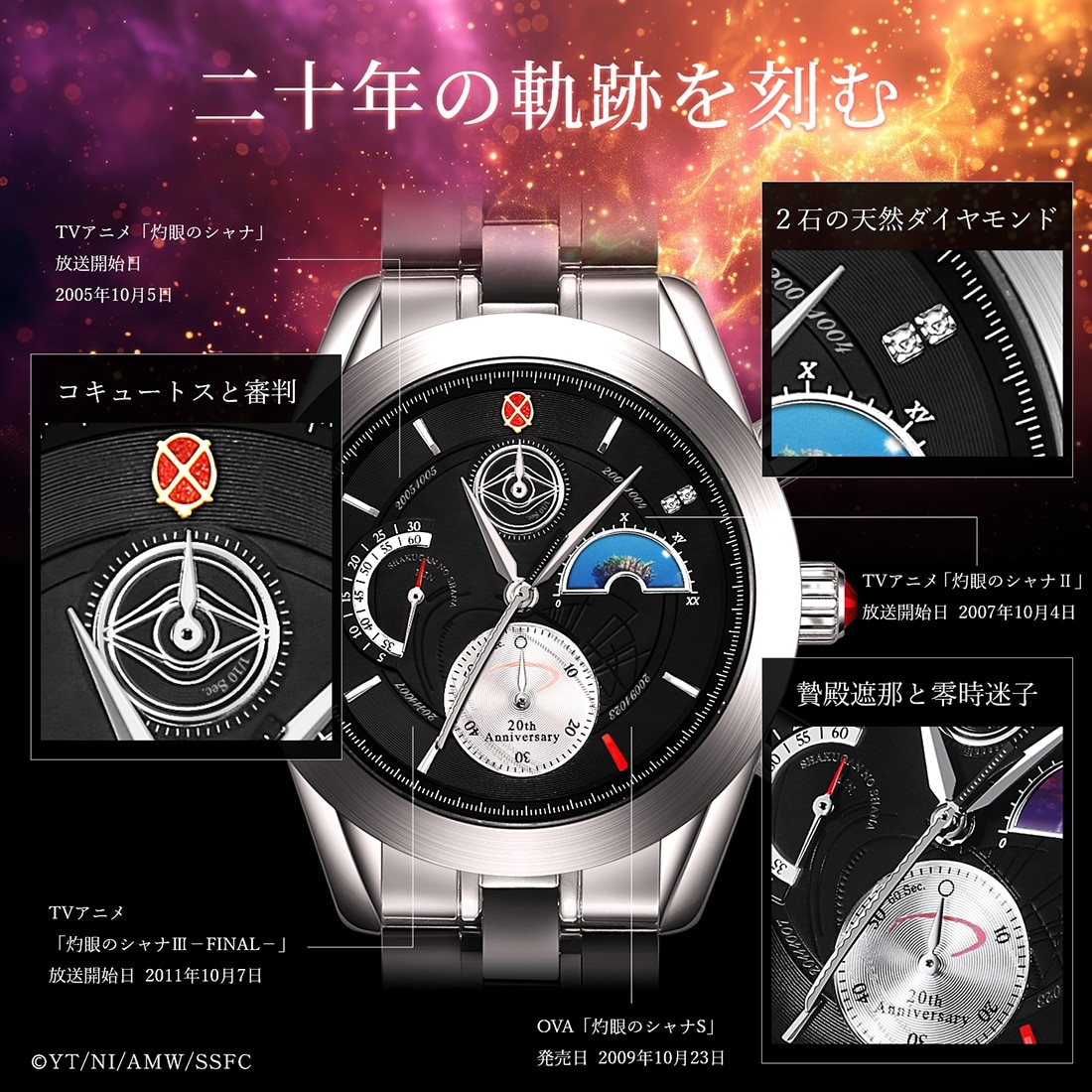 官方也在此時宣布,將推出動畫20周年的限量紀念手錶,整體設計處處融入作品中的象徵元素,充滿《夏娜》的世界觀。售價為29,700日圓,限量2,005副,目前已可在 Kadokawa Store 與 Chara-Ani.com 預購。