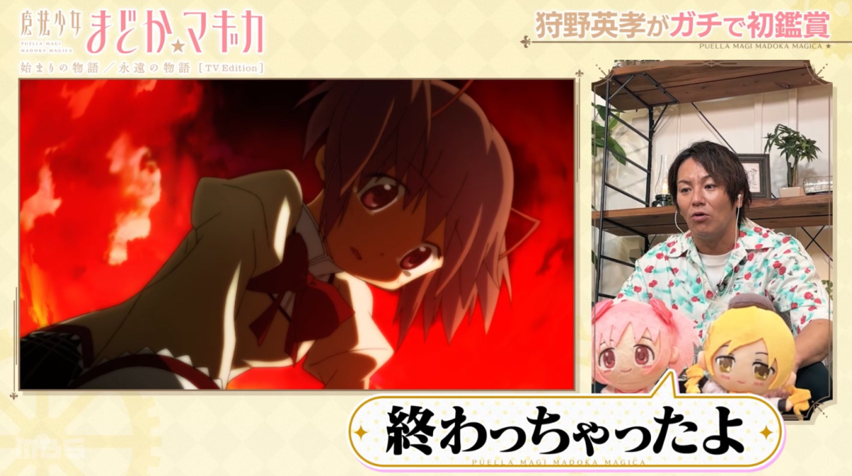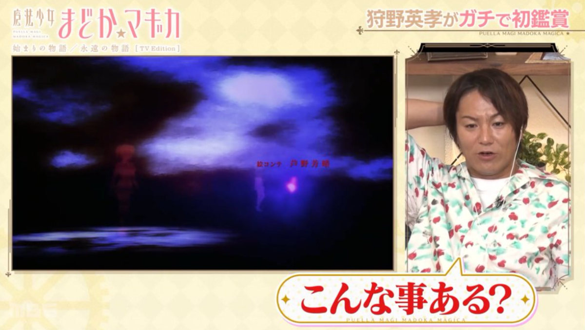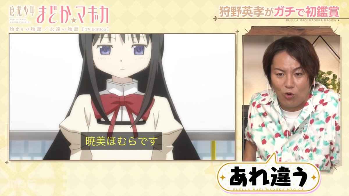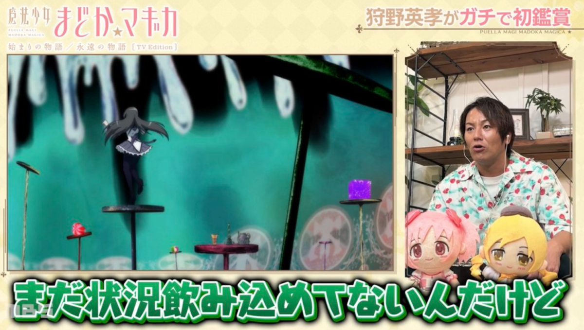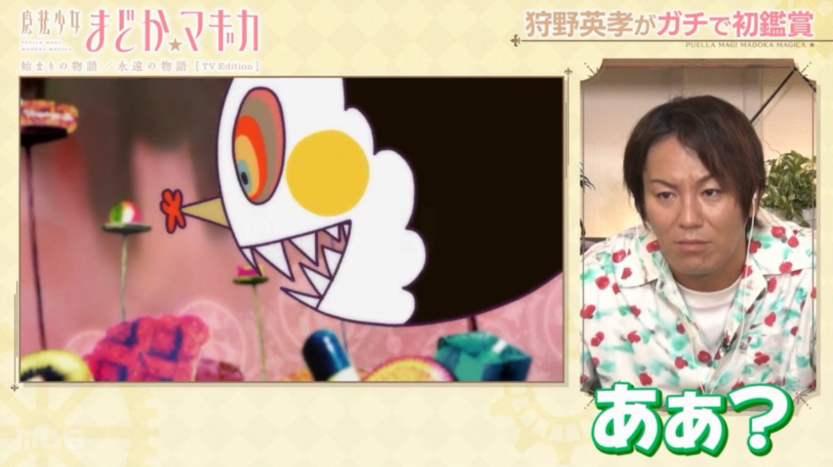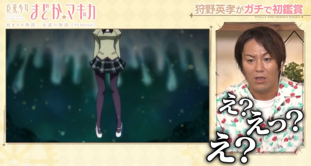 近期日本電視播出《魔法少女小圓 起始的物語/永遠的物語 TV版》,請來從沒看過該系列的搞笑藝人狩野英孝擔任副音聲講評,結果在看到「巴麻美」的慘痛一幕、也就是日本網友所言的「被麻美(マミる)」的經典場面時,整個人直接混亂當機,這樣的反應也在網路上引起熱議。