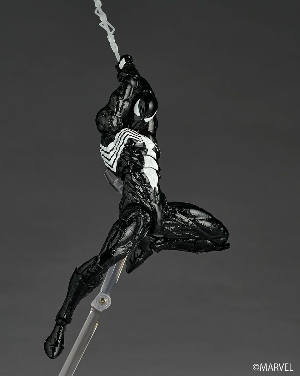 本次的共生體蜘蛛人可動人偶高約 16 公分,原型由系列總監督山口勝久老師親自操刀,在蜘蛛人精實的肌肉線條上雕刻添加共生體類似血管的紋理,使用黑色亮面漆上色呈現共生體獨特的反光質感,並塗裝還原胸口的白色蜘蛛符號,再現蜘蛛人被共生體附身的標誌造型!