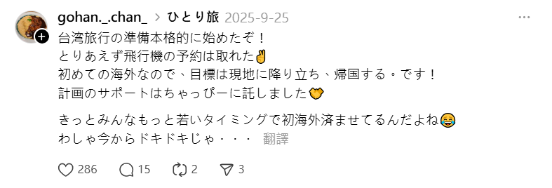 約莫一個月前這名網友才發行,他準備人生第一次海外旅行就是到台灣,決定把這些計畫都交給ChatGPT來發落,他也對這趟旅行感到非常興奮。