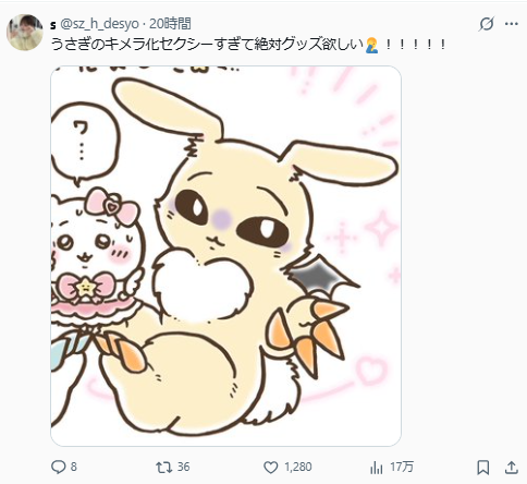 馬上就有網友希望奇美拉兔兔可以推商品了,這造型真的太...色又可愛了...。