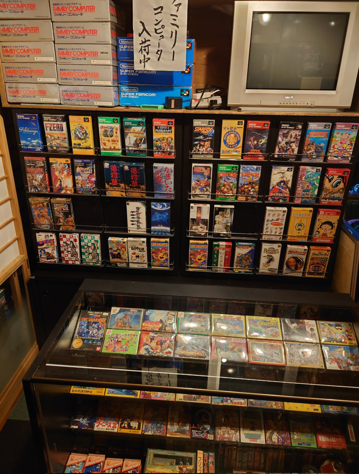 最吸睛的莫過於他展示用的陳列家具,那可不是仿製品,而是「真正任天堂授權的店鋪展示架」,是他從一家結束營業的玩具店那裡收來的。リョウ表示:「我把它清理乾淨後繼續使用。」連地毯都換成任天堂店鋪風格,整個氣氛超講究。