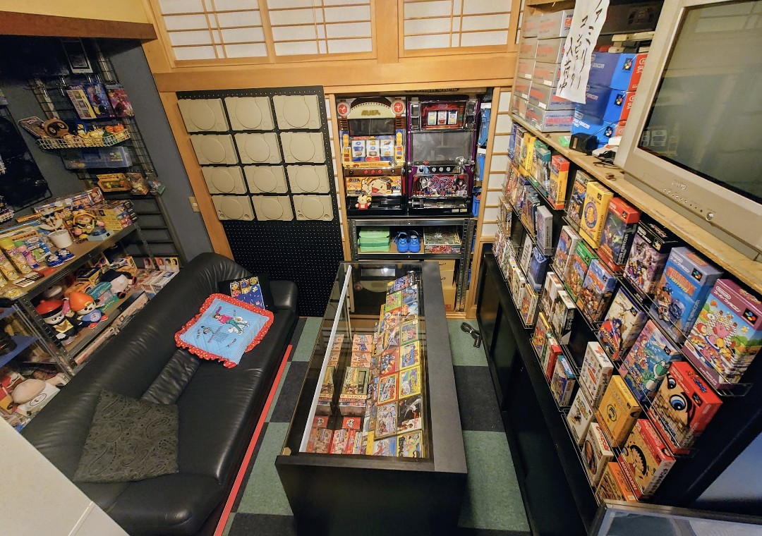 リョウ平常是一位鈑金技師,和家人住在老家。他自嘲自己是在「一個人從過去時代回到現代、邊懷舊邊享受」。一踏進這間房間,就像穿越回平成初期的遊戲店——玻璃展示櫃裡整齊排滿紅白機的卡匣,架子上堆著懷舊玩具盒,電視螢幕上正播放著《洛克人2》。