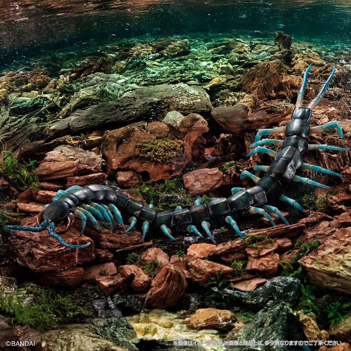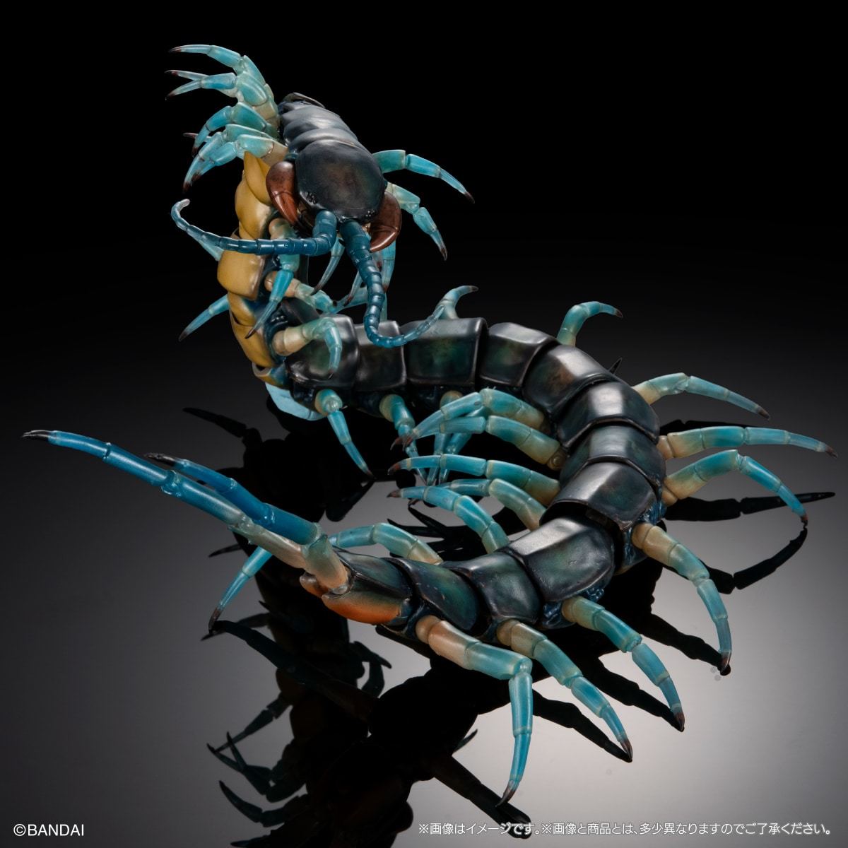 有「琉神大百足」之稱的青龍蜈蚣(琉神蜈蚣),以琉球王國的神話為靈感命名,為世界上第三種被發現的水陸兩棲蜈蚣類。在日本被指定為珍稀野生動植物,不能當作寵物飼養,但透過「生物大圖鑑Ultimate 青龍蜈蚣」轉蛋,就能滿足滿足那些想在家中擺放琉神的人的夢想!以全長約 465mm 的超魄力尺寸還原,如翡翠般呈現藍綠色的精美外觀,透過 186 個可動關節,再現了靈活的動作。