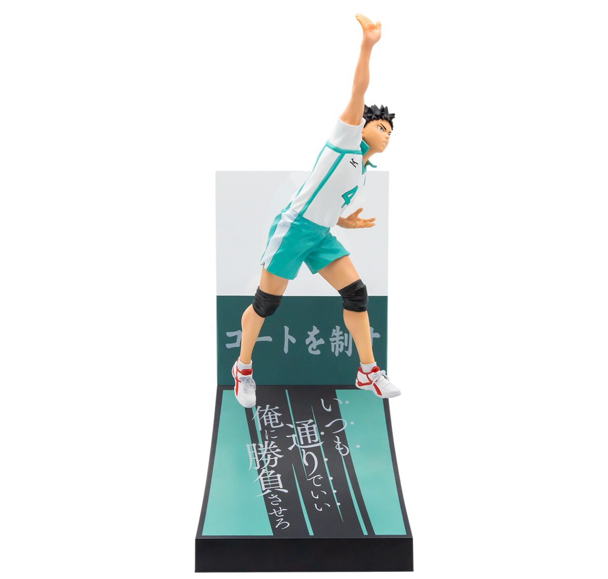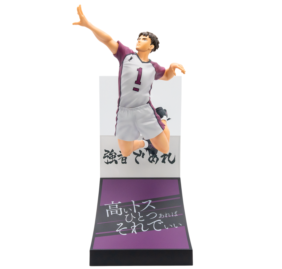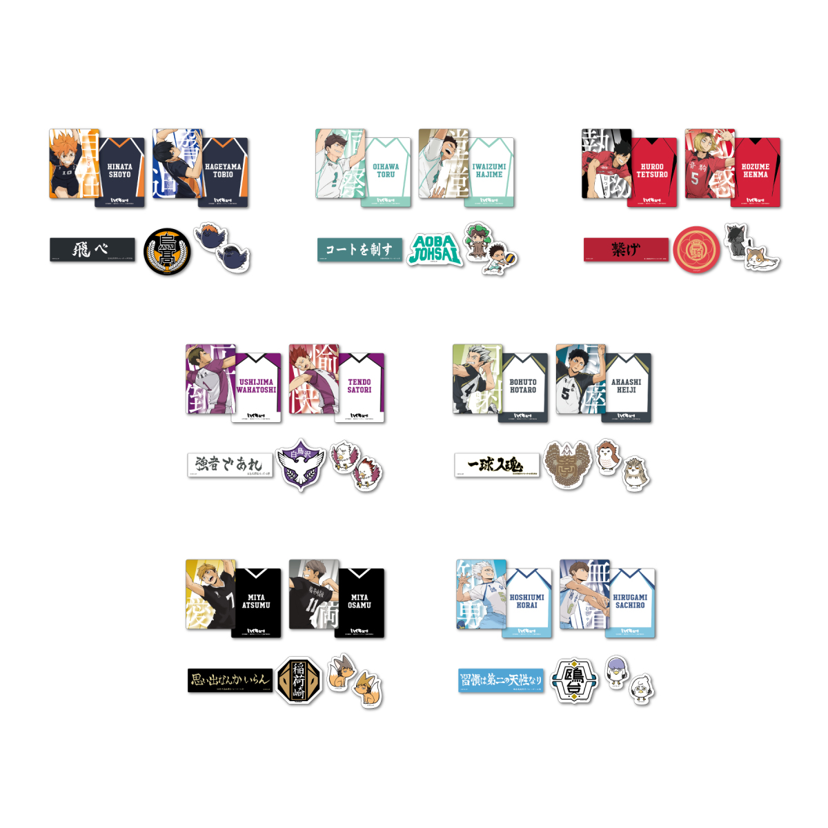 「Happy賞 排球少年!!」共有 A~K賞 + Last賞的精彩獎品,五款角色模型分別是日向翔陽、影山飛雄、及川徹、巖泉一和牛島若利,造型以比賽場景為靈感,還原躍動的姿態,並有造型底座,上面印有各自學校的旗幟和動畫中的經典台詞,讓整體更具獨特性!另外還有大型壓克力立板、吸管杯、明信片冊、橫幅扁袋、以「連接」為主題的壓克力吊飾扣、徽章套組、貼紙&卡片套組...等,所有獎品均為Happy賞的獨家原創商品!