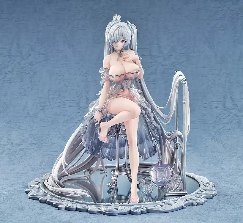 GOOD SMILE COMPANY「灰姑娘:水晶公主」1/7比例PVC 塗裝完成品,尺寸約高 24 公分,以水晶公主的造型為基礎,將身穿水晶禮服,在鏡子台座上優雅的坐姿立體化。大肉感的三巨頭體態以若隱若現的透明材質包覆,展現出極為晶瑩剔透的光澤感;裙擺精緻的塗裝表現出優雅的漸層,水晶鞋可自由穿脫,營造不同的氣氛。銀白的長髮髮絲搭配白皙的肌膚,散發唯美氣質,透過底部的鏡面效果,欣賞極致的魅力!