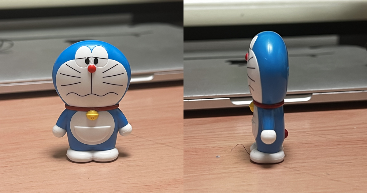 然而,轉到側面時,整個身體幾乎平貼於桌面,原本立體的形象瞬間化為薄片,視覺衝擊十足。網友笑稱這是「哆啦A夢進化成貼紙版」、「塞縫神器」、「筷架新用途」,也有人打趣道:「成本削減的浪潮終於延伸到22世紀啦w」。