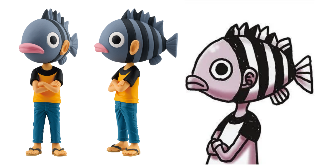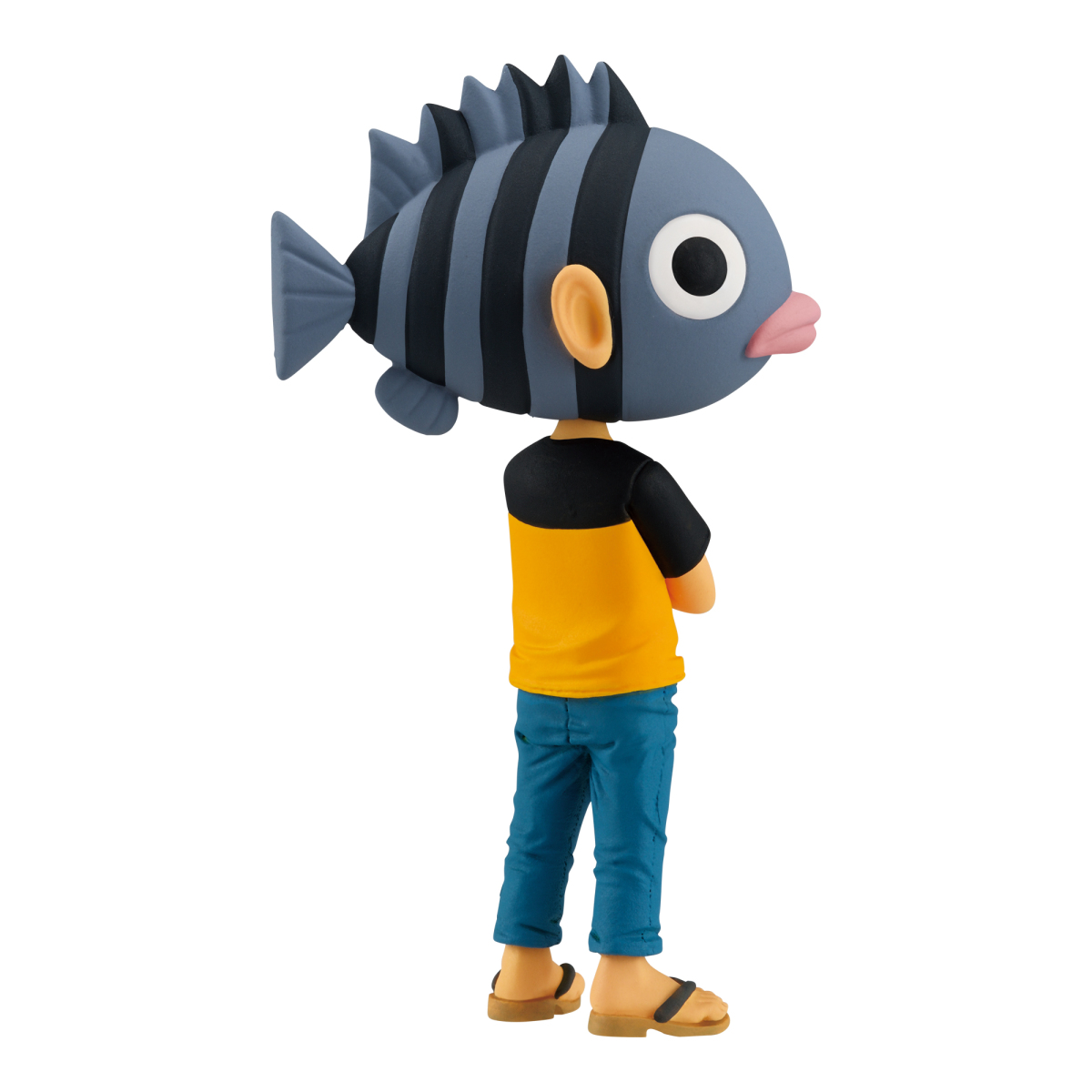 「ONE PIECE WCF 尾田榮一郎」,在僅有掌心大小的 7 公分尺寸中,採用三頭身 Q 版造型還原《航海王》作者-尾田榮一郎的魚頭自畫像!筆下特色魚臉,帶有灰黑相間的條紋花色,從兩側長出人類耳朵的模樣立體化後相當搶眼~除了雙手抱胸的招牌動作,還有黑黃色拼接袖的T恤,以及牛仔褲與搭配木屐等插畫中的小細節!如此罕見的商品,海賊迷真的必須要收藏欸!