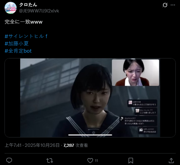 加藤小夏在演出後坦言,拍攝過程極為艱辛。她表示:「有幾天真的覺得自己快要瘋了,但現在回想起來,那些時光成了珍貴的創作養分。」正因這份深刻投入,當她宣布親自實況遊玩時,粉絲們紛紛表示「這才是真・雛子視角!」。
