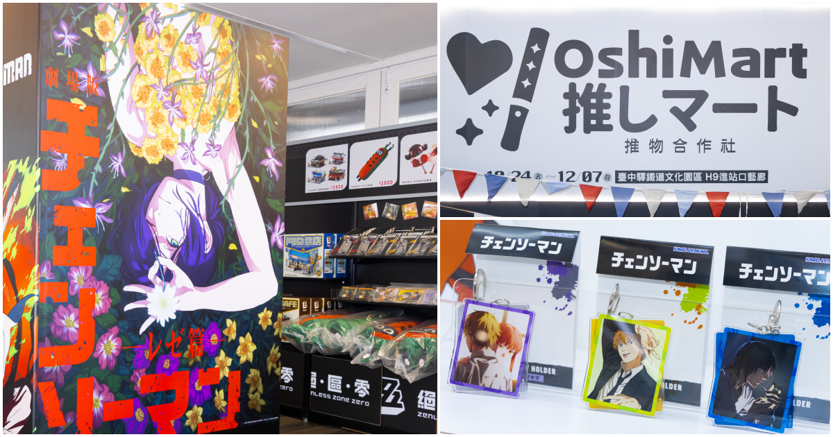 台中的玩具人必逛!《Oshi-Mart推物合作社 快閃店》在臺中驛鐵道文化園區開幕啦~這次的快閃店陣容集結了眾多大家的推:《排球少年》、《鏈鋸人》、《咒術迴戰》等熱門動漫,以及手遊IP《絕區零》、《原神》、《星穹鐵道》等,除了販售大量週邊商品,還有打卡牆讓大家拍好拍滿~重點是,不用門票、免費入場!展期為 2025 年 10 月 24 日~ 12 月 07 日,敬請把握機會不要錯過啦★