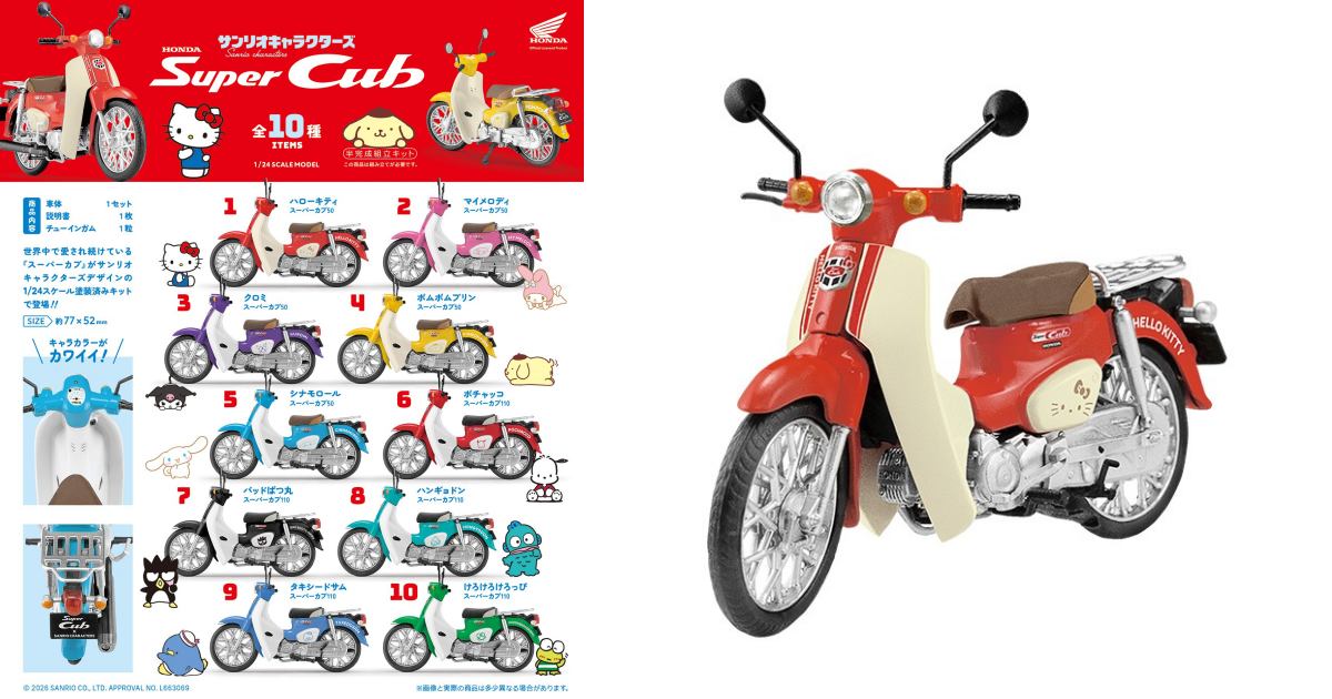 推出過眾多物件及道具食玩的日本 F-toys Confect 公司將推出以三麗鷗明星為主題的新食玩商品——「三麗鷗明星 HONDA Super CUB」1/24 比例預塗裝組裝模型,參考售價為單盒 858 日圓,預計於 2026 年 02 月 23 日發售!