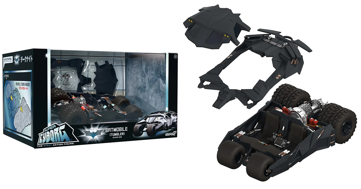 美系玩具廠牌 SUPER7 主打可以拆開表面零件一窺內部構造的「Super Cyborg」系列,在推出蝙蝠車(1989)、蝙蝠車(1989)透明版之後,這次則是以 2005 年諾蘭黑暗騎士三部曲的《蝙蝠俠:開戰時刻》為題打造「蝙蝠車」(Batmobile Tumbler)的全彩版本載具。現正於 SUPER7 官網開放預訂,建議售價為 150 美金。