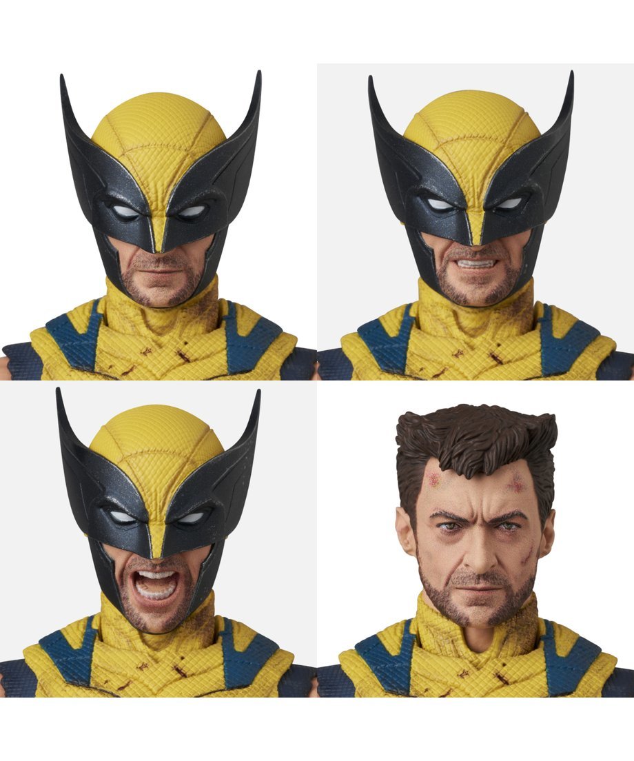 身體部分沿用一般版本的軀幹及腿部,在胸口及背部塗裝有寫實的血漬和刀傷,大腿也舊化呈現沾上灰塵的視覺效果,手臂則是雕刻製作了將袖子扯下後大秀肌肉的造型,肌肉紋理與爆出的青筋都配合塗裝完美再現!配件部分收錄有三種表情的面具頭雕、一款一般版也有收錄的休·傑克曼頭雕以及多組手部替換件,可以搭配靈活可動與將在 06 月的死侍一起擺設,再現電影中並肩作戰的場景!