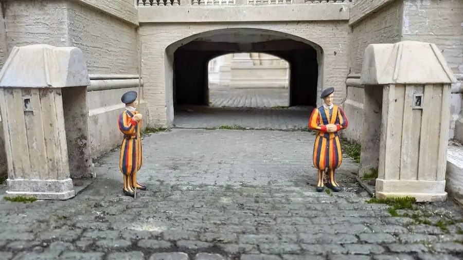 除了國會議事堂外,園內還藏有許多各國家的趣味設定,都會與時俱進更新內容,像美國的白宮歷來都會展出歷任總統一家,目前是川普家族版本。梵諦岡聖彼得大教堂上,也可見教宗與瑞士衛兵人偶。