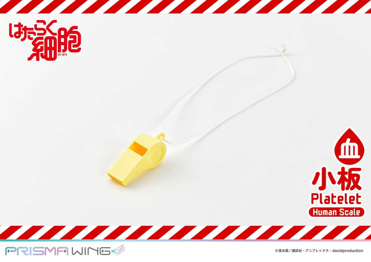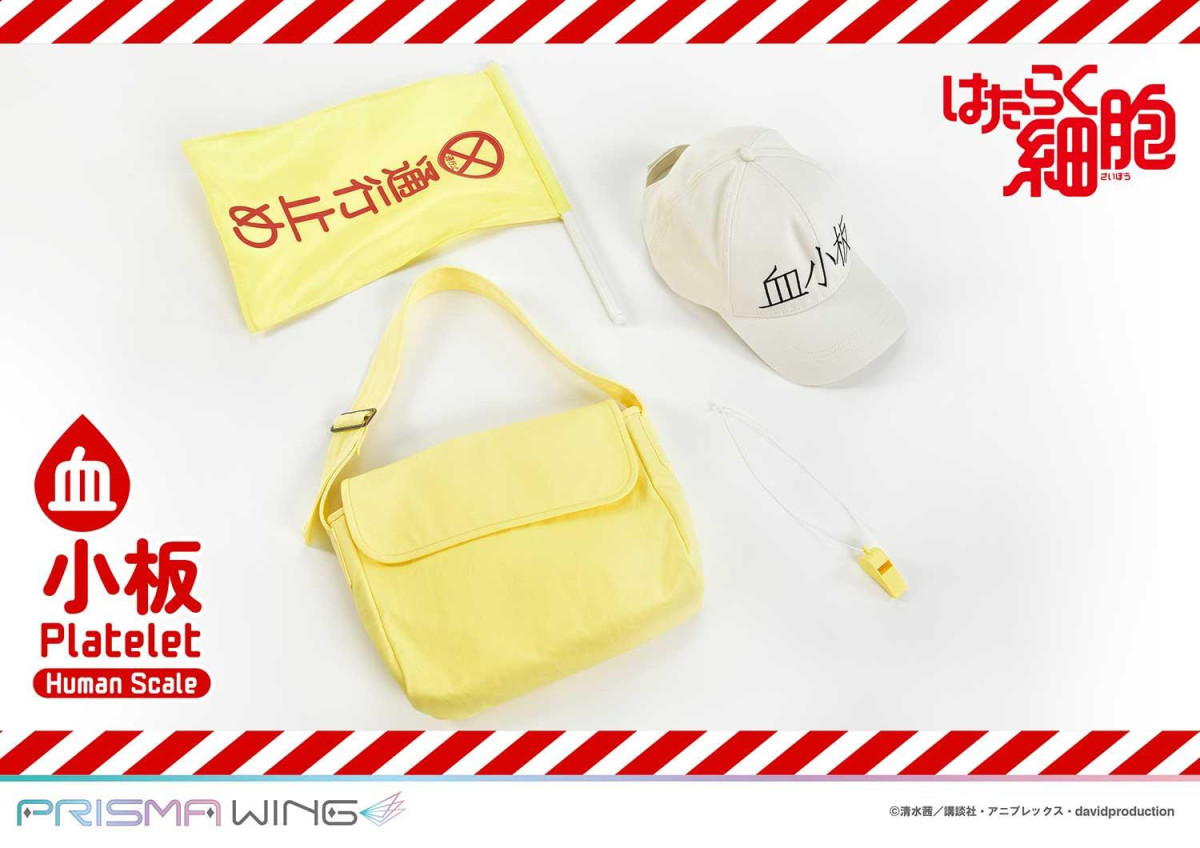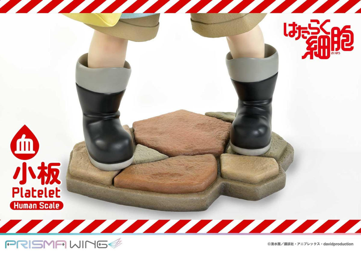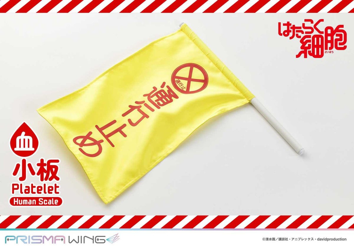 在《工作細胞》當中以超可愛姿態與經典台詞「阿諾捏!阿諾捏!」收穫超高人氣的血小板這次竟然以全高 100 公分的尺寸立體化啦!整體根據動畫當中活潑天真的樣貌為題設計,從開朗的神情、飛舞的長髮,到傳神形塑出皺摺的淡藍色上衣都考究再現,本體材質選用的是 FRP,而印有「血小板」字樣的白色帽子、黃色小背包是以帆布為材料,通行止め(禁止通行)黃色旗子則採用柔軟布料縫製,可以自由搭配在血小板身上、增加展示的變化性~!