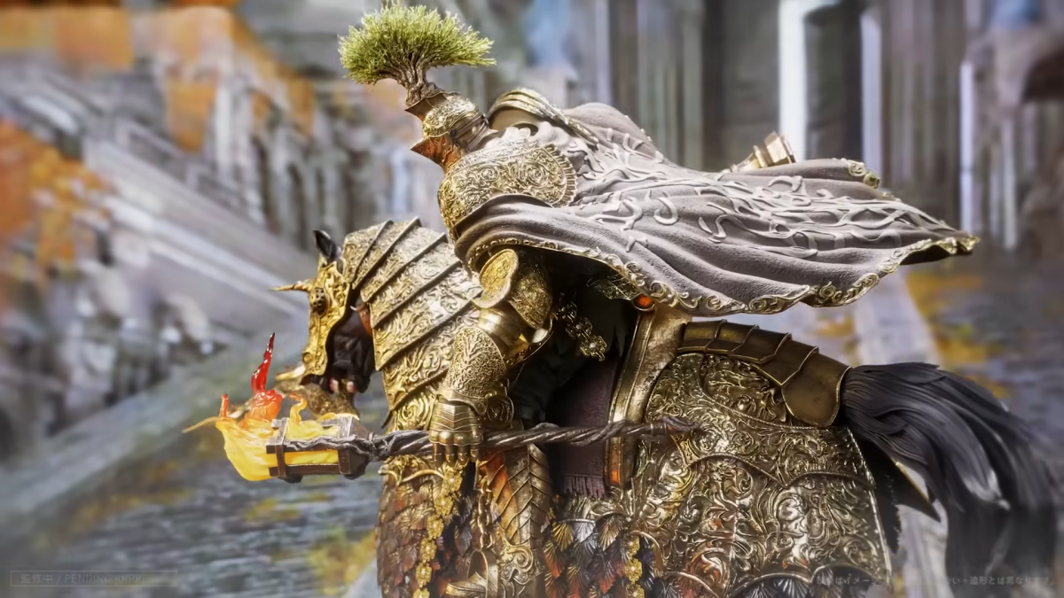 目前可以看見「Ultimate Premium Masterline 大樹守衛 1/4比例雕像」試作品擁有魄力的驚人尺寸,徹底再現大樹守衛身軀的黃金鎧甲、戰馬鎧甲、黃金斧槍與黃金樹大盾的高密度、極為華麗的雕紋造型,並施以豐富的色彩塗裝表現寫實的黃金光澤。透過替換零件還能重現亞壇高原上左手持「哨兵火把」的個體。