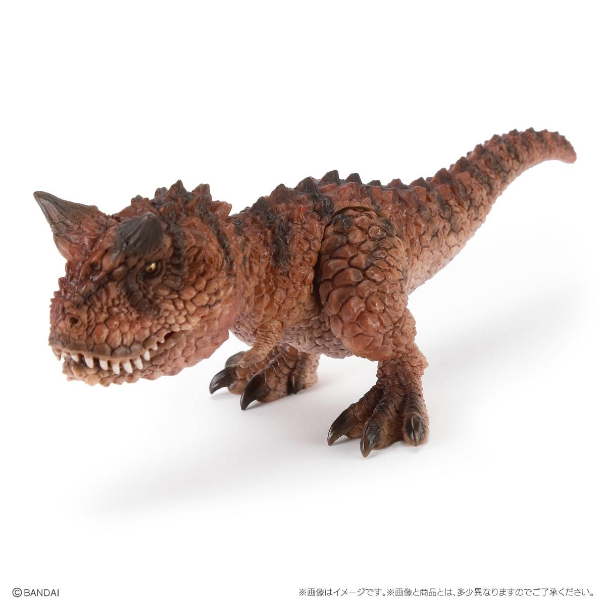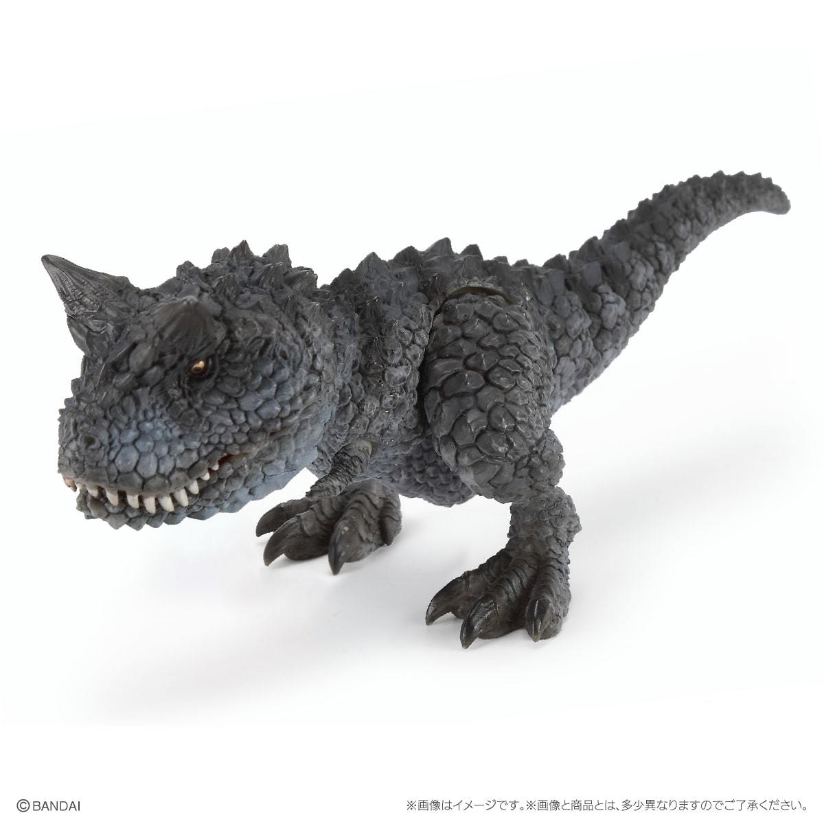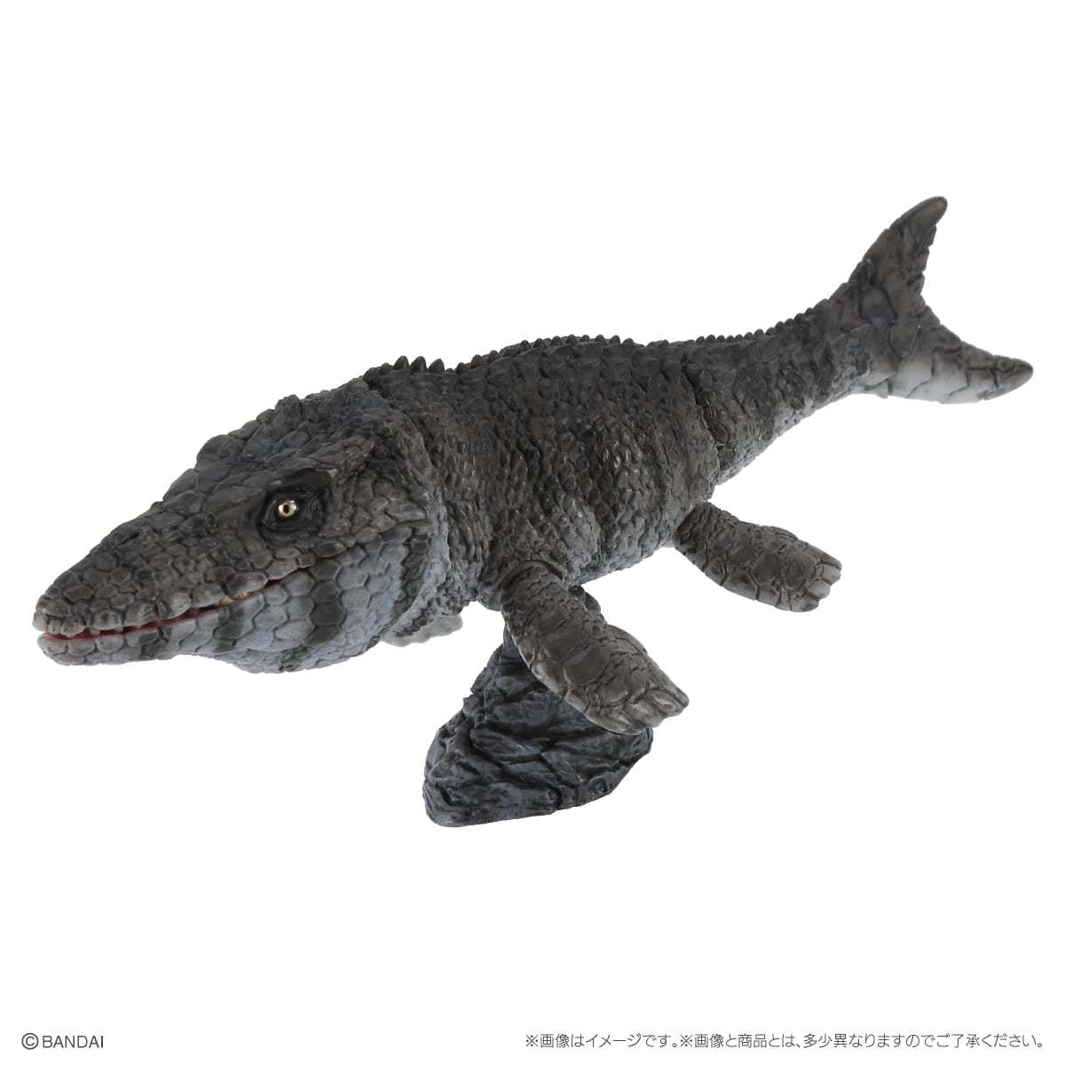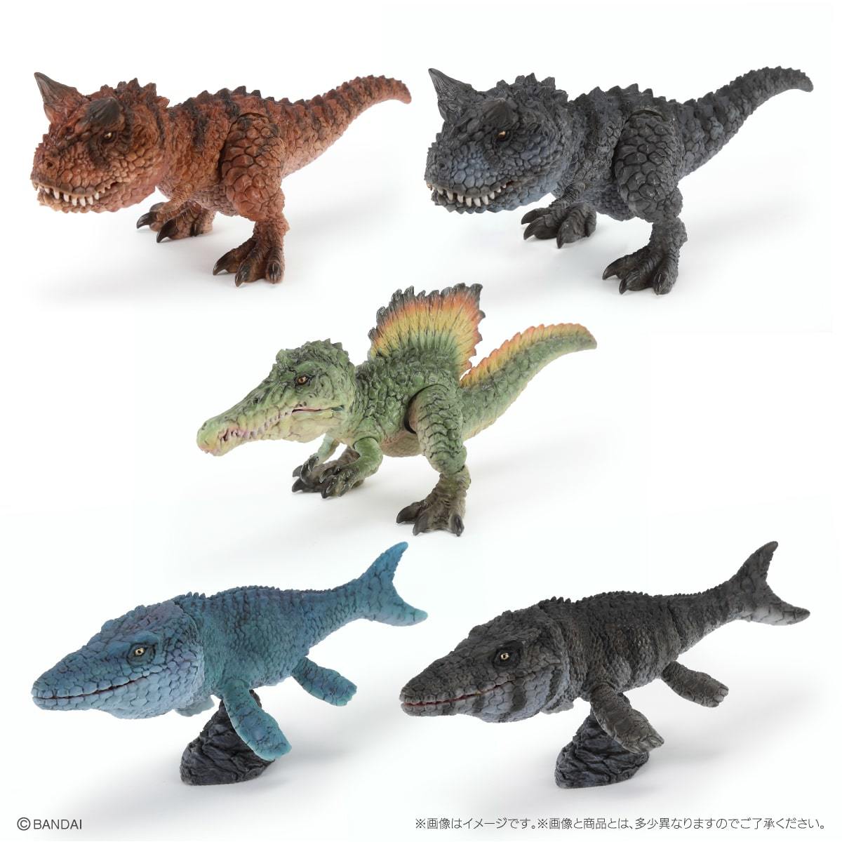 本次收錄的全新恐龍包含頭上有著魄力雙角的「食肉牛龍」以及大海王者「滄龍」,牛龍的犄角極具存在感,面貌相當兇惡!極其短小的前肢也做出還原,看起來真的比同系列暴龍的前肢還要迷你;而刷新本系列尺寸、長度來到 11.5 公分的滄龍則配置了一個岩石底座。可動部分牛龍是 9 處、滄龍則具備 8 處。另外,在第二彈出現的棘龍這次也以新色再度現身。