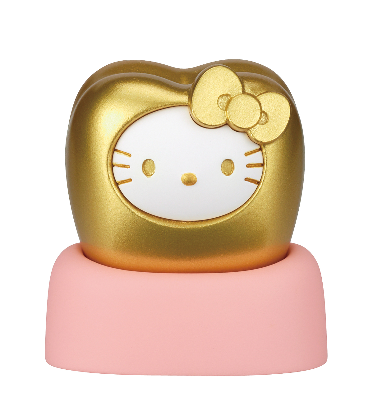 除了收錄四顆健康的牙齒:Hello Kitty、美樂蒂、布丁狗、貝克鴨之外,哭哭的酷企鵝顯然是陷入不妙的蛀牙狀態啦~另外,竟然還有看起來超級高貴的 Hello Kitty 金牙版本!越看越有意思。