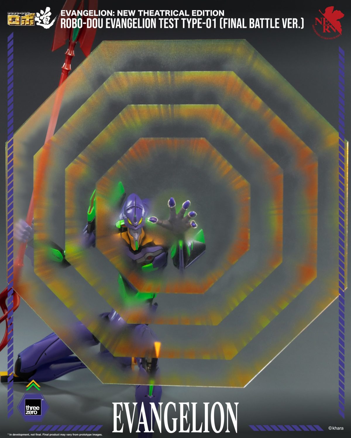 「ROBO道 EVANGELION 初號機(最終決戰Ver.)」,尺寸高約 25cm,以亞鉛合金、ABS、POM、PVC...等複合材質製作,再現EVA特色的比例與造型。依據《新世紀福音戰士新劇場版:終》中的設定,換上了新配色塗裝,並採用全新設計的可動胸部零件能展開兩側裝甲,新規的頭雕除了可動下頜關節,眼睛部分還附有LED發光裝置,全身具備 50 處可動部位!