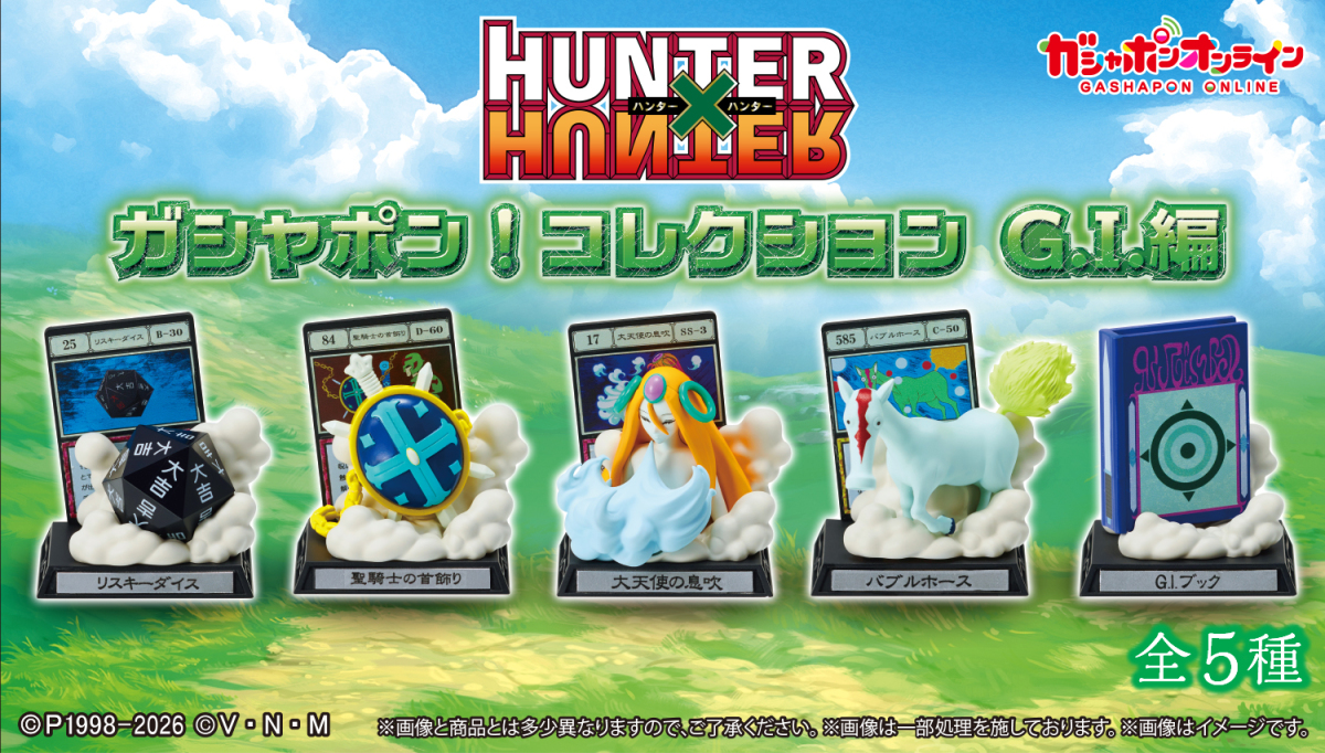 由日本萬代轉蛋事業部 GASHAPON 發行的「GASHAPON!COLLECTION (ガシャポン!コレクション) 」系列,以人氣作品《HUNTER×HUNTER獵人》為主題,推出最新一彈的「HUNTER×HUNTER獵人 GASHAPON!COLLECTION 貪婪之島 G.I.篇」轉蛋!一共有五種款式,參考售價為一轉 400 日圓,預計將於 2026 年 03 月開轉。