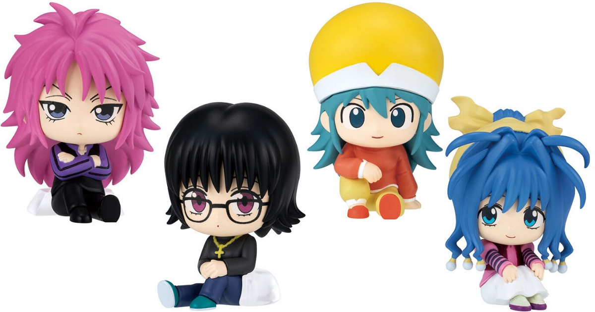 繼系列前五彈和一般比例的 Real 1、Real 2 後,本次的「HUNTER×HUNTER 坐下隊 GIRL」以劇中的人氣女角為主題,收錄幻影旅團的瑪奇、小滴、獵人彭絲,以及黑幫首領萊特·諾斯拉的千金妮翁四種款式,在約兩頭身的比例下還原角色造型,小滴胸前的項鍊、妮翁的髮型等細節都被可愛的呈現,每位少女都有著符合自己性格的坐姿,並附有一塊透明的塊狀支架讓擺設更穩固,可以配合先前推出的坐下隊 Q 版系列角色一起陳列,一字排開看起來一定超讚的!