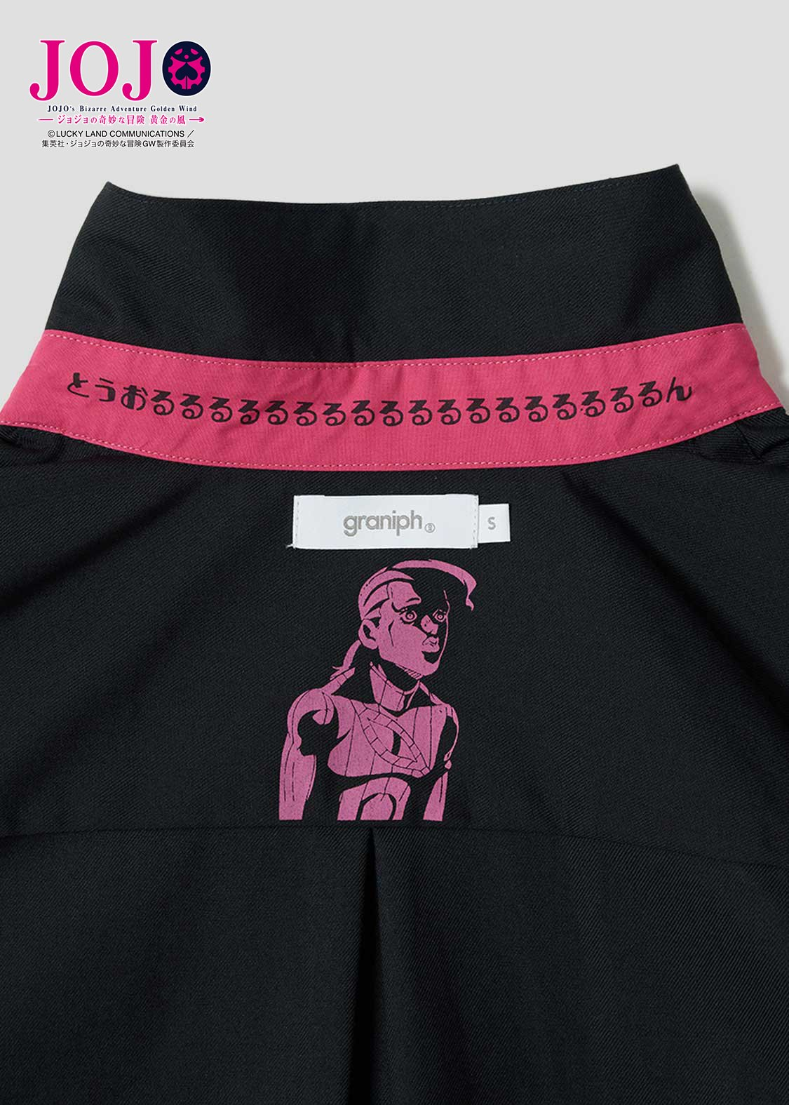 服飾廠牌「graniph」本次聯名的服飾商品多變,並不僅限於簡單的短 T 或是外套穿搭。這次結合三部「不滅鑽石」、「黃金之風 」、「石之海」作為主題,把各種JOJO風格的元素融入服裝設計中。款式相當之多,非常值得喜歡的粉絲入手。