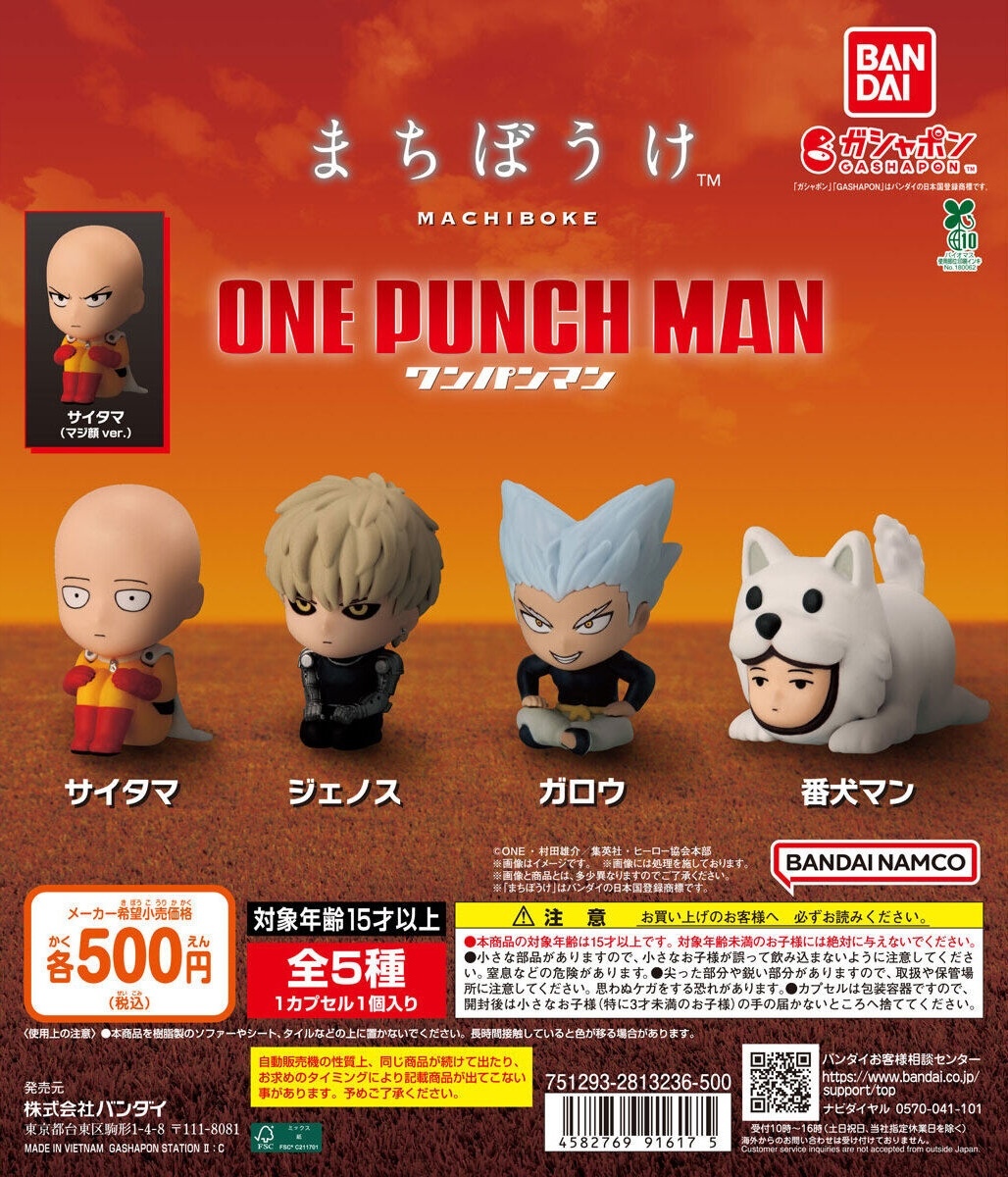 日本萬代公司轉蛋事業部 GASHAPON 旗下熱門的「等待中」(まちぼうけ)系列將推出人氣動畫《一拳超人》主題的新商品——「等待中的一拳超人」,參考售價為每轉 500 日圓,預計於 2025 年 11 月第五週發售!