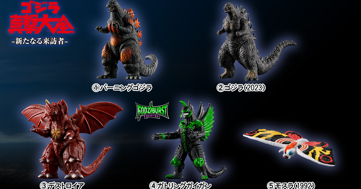 由日本萬代玩具公司食玩事業部 BANDAI CANDY 發行的《哥吉拉》主題食玩商品『哥吉拉真擊大全』在沉寂約 7 年後終於宣告復活,最新商品「哥吉拉真擊大全 新生的來訪者」於 2025 年 11 月 03 日正式發售,此次推出的東寶怪獸陣容也全數公開。