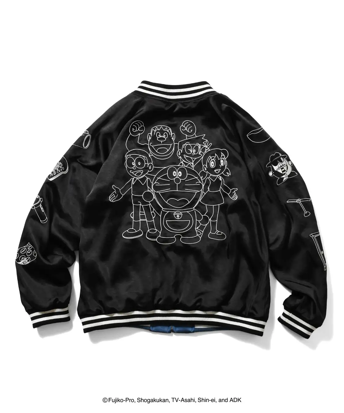 採用雙面可穿設計。正面以藍色為主調,胸口繡上《哆啦A夢》的標誌Logo與倒立姿勢的哆啦A夢,背面則有哆啦A夢與哆啦美的大面積刺繡圖樣,超級搶眼。