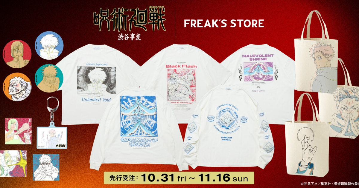以美式穿搭出發的 FREAK'S STORE,這次的聯名系列,則是採用MAPPA的動畫原畫稿設計,推出包含T恤、長袖T、托特包、徽章、貼紙、壓克力鑰匙圈等多款單品,不僅穿搭好搭配,連推活小物都讓你可以匹配。