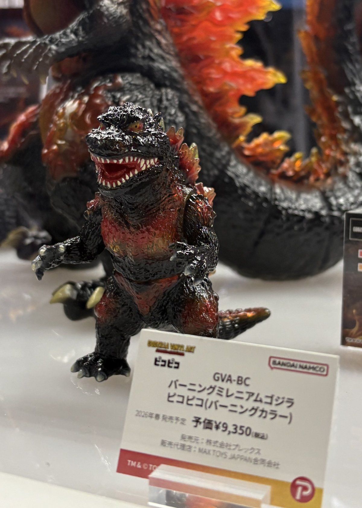 由日本模型商 PLEX 推出,與日本、世界活躍藝術家們合作、將其特色風格融合至怪獸軟膠模型的『GODZILLA VINYL ART』系列,展出了出自「Godzilla Fes 2025」短篇新作影像《FES・哥吉拉Ⅱ 新宿炎上》的最新商品「GVA-BC 紅蓮千禧哥吉拉 Frog tree(紅蓮配色)」、「GVA-BC 紅蓮千禧哥吉拉 Pico Pico(紅蓮配色)」上色樣品,預計於 2025 年春季發售。