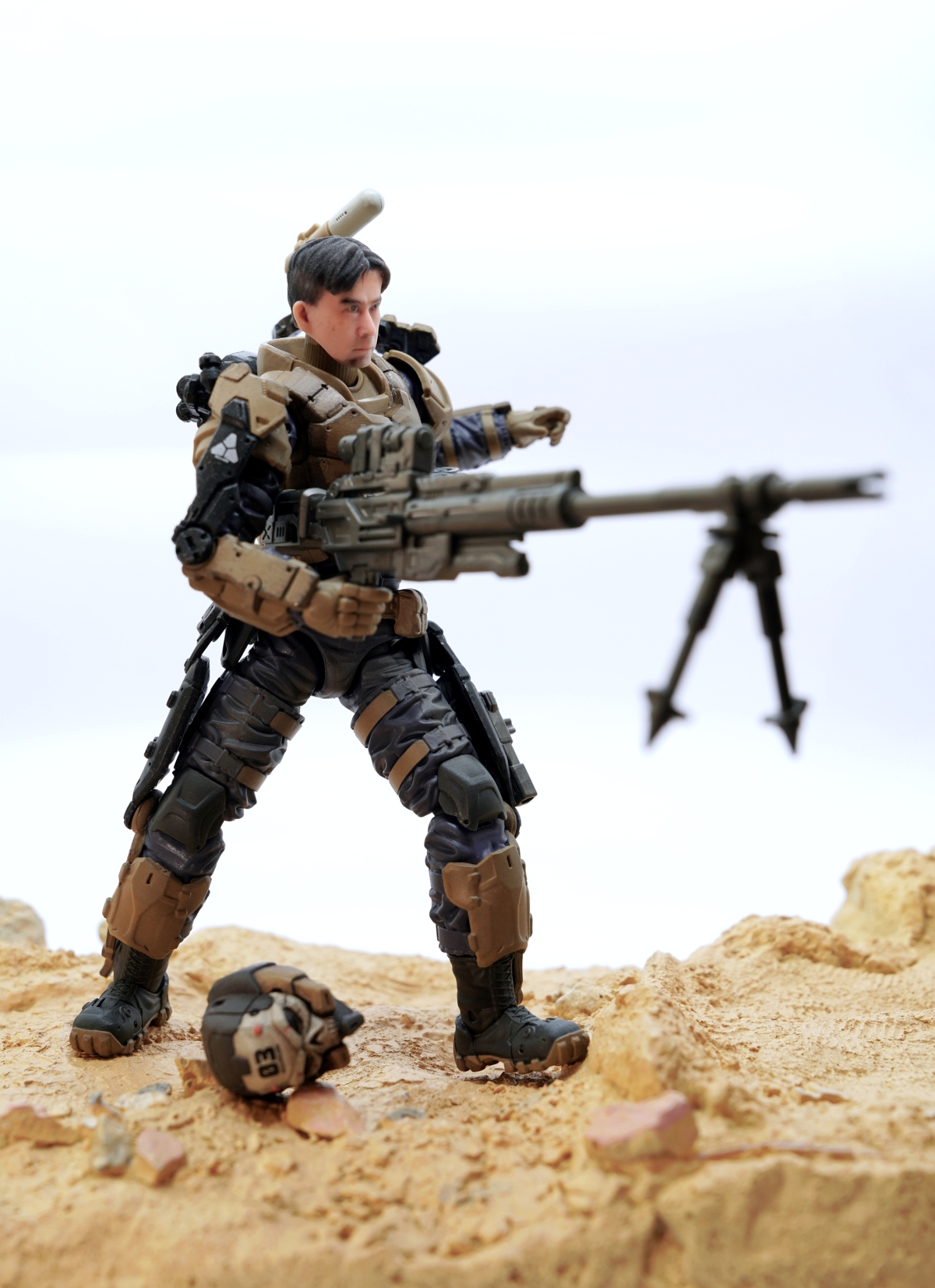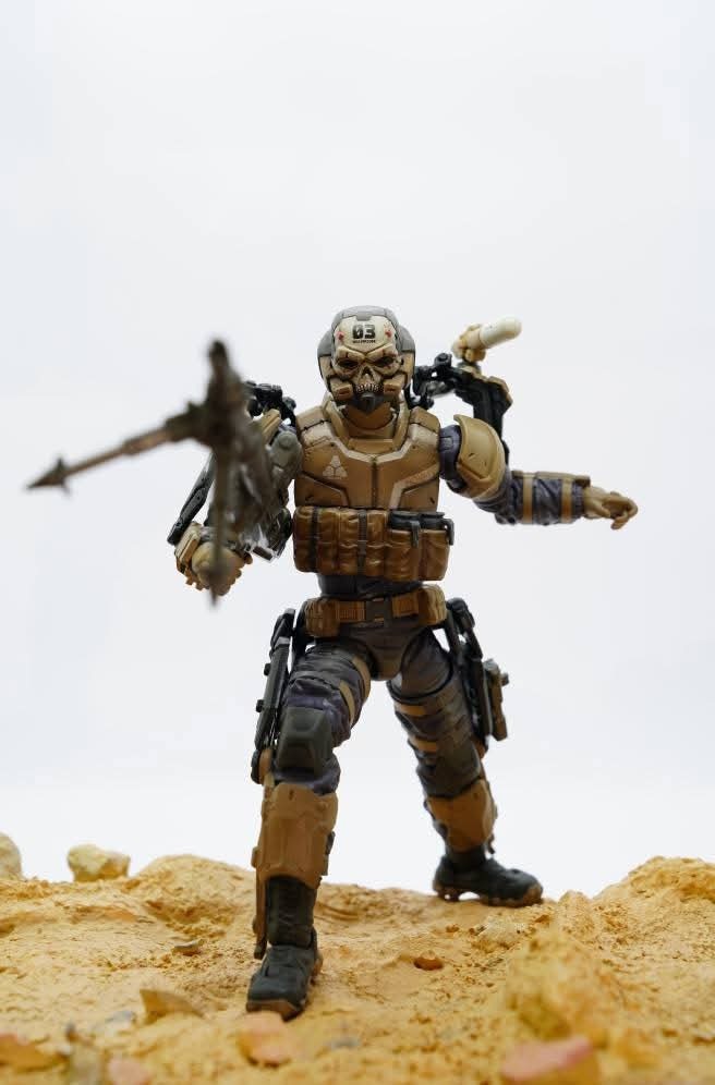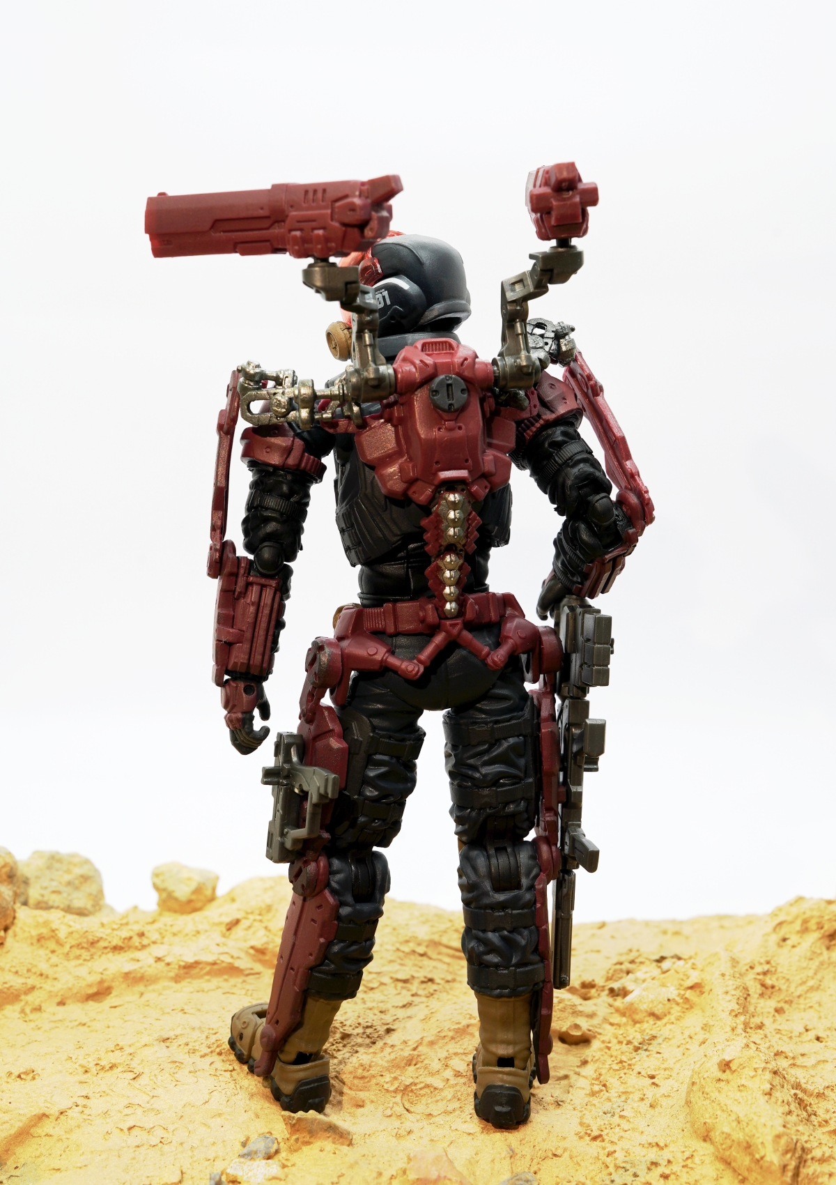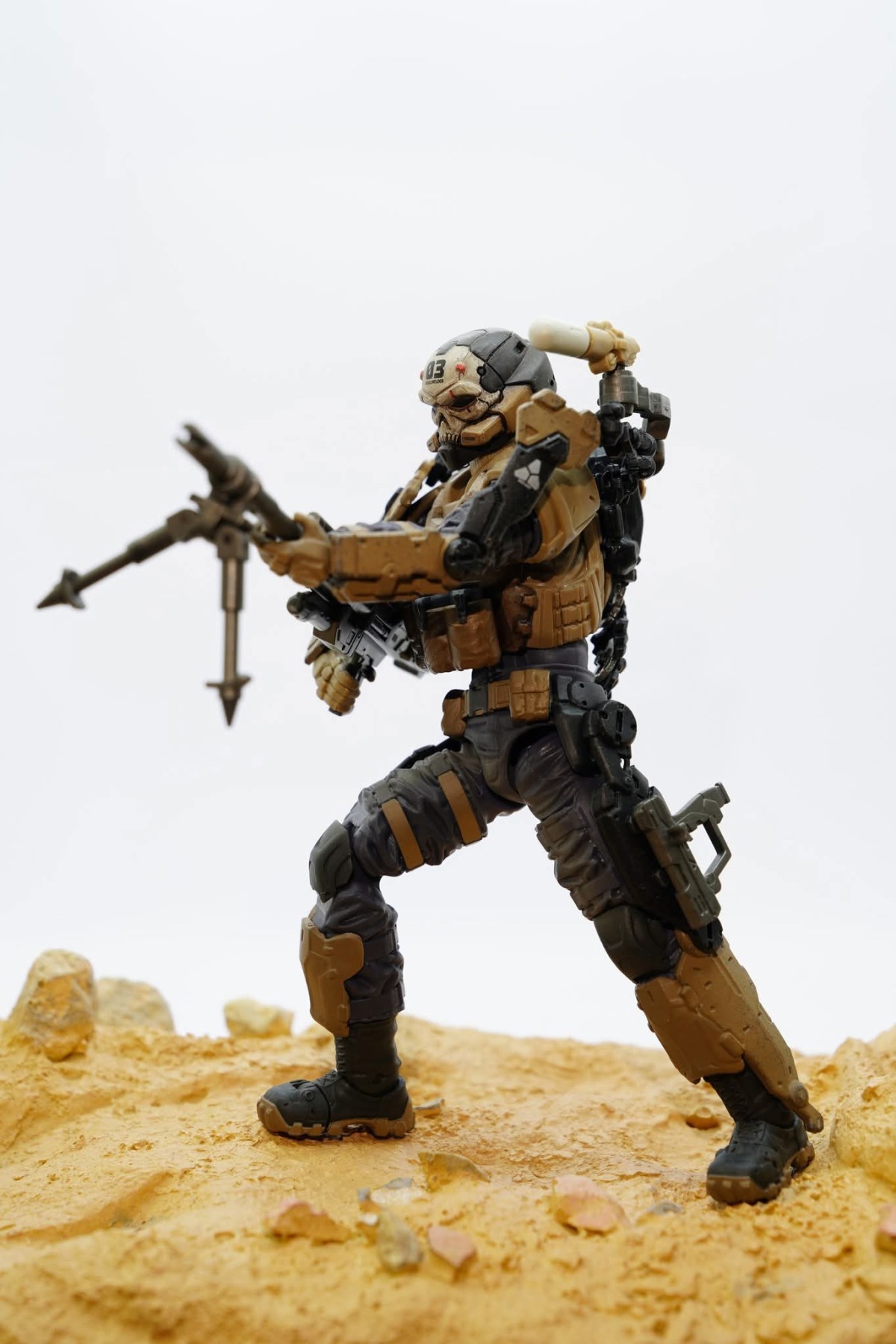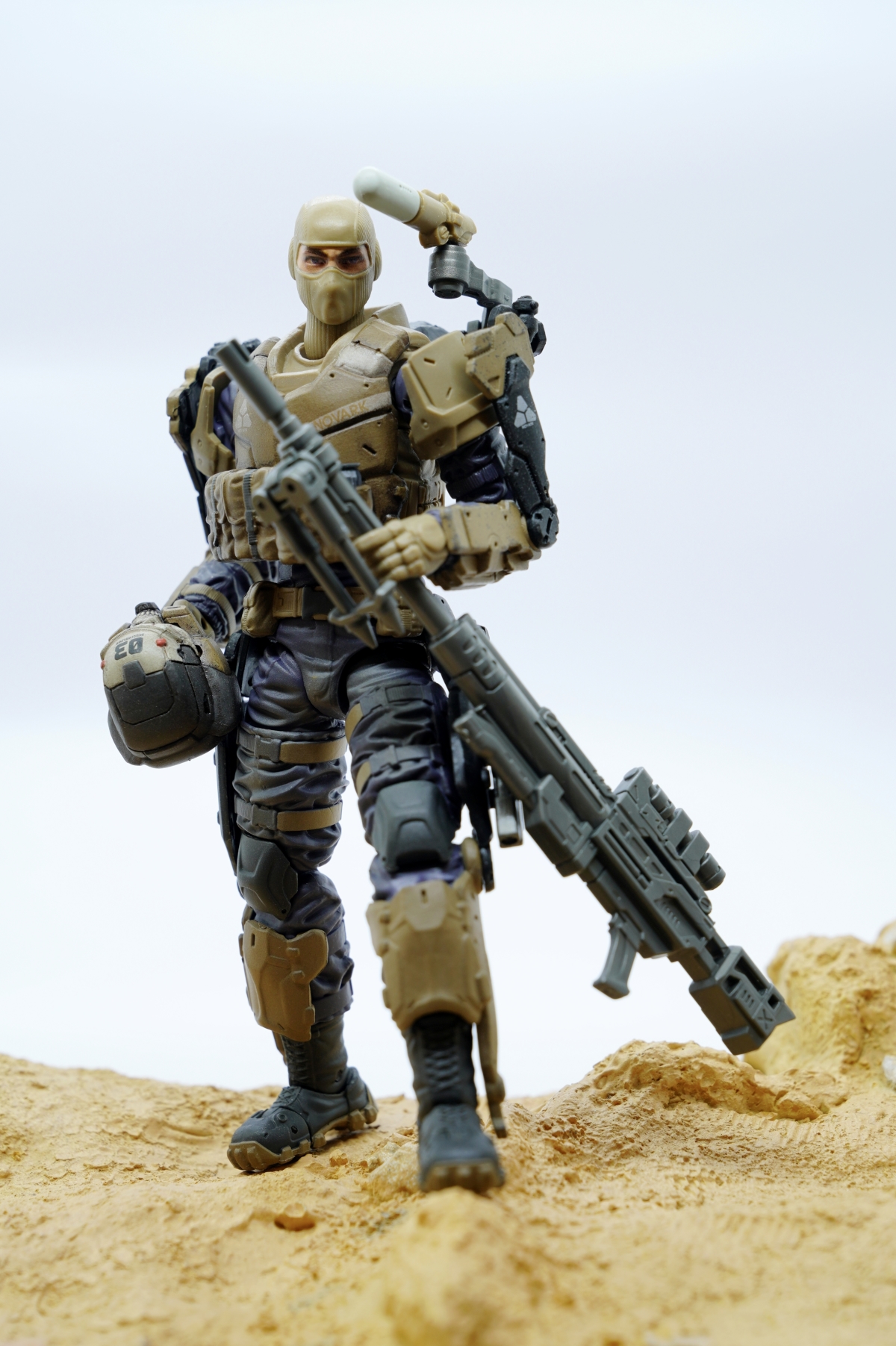外型非常吸睛,整體感覺是類似美玩的素體,所有部件都是軟膠製,所以把玩時十分安全。雖然只是港幣 250 元左右,但他依然包括了可脫著式強化外骨骼,多樣的武器等等提升玩味的點子!而最驚喜的是部分款式的頭盔同樣是可脫的,把玩時的感覺和美玩相近。主體部分有塗裝之餘亦有微量舊化,可動性不俗。撇除成本,個人建議素體上可以參考日系 SHF!另外手型方面,除了持槍手之外希望多送一點造型手,擺姿勢時會更加得心應手!另外背部外骨骼附加裝置組合時不太順暢。我個人將柱身位削短才可以完美地組合。老實說,這個價錢有這個質素真的沒有什麼話說,完美地將酸雨的軍武風格系列提升至另外一個層次!喜歡 Acid Rain 或近現代軍武風的朋友真的不要錯過!