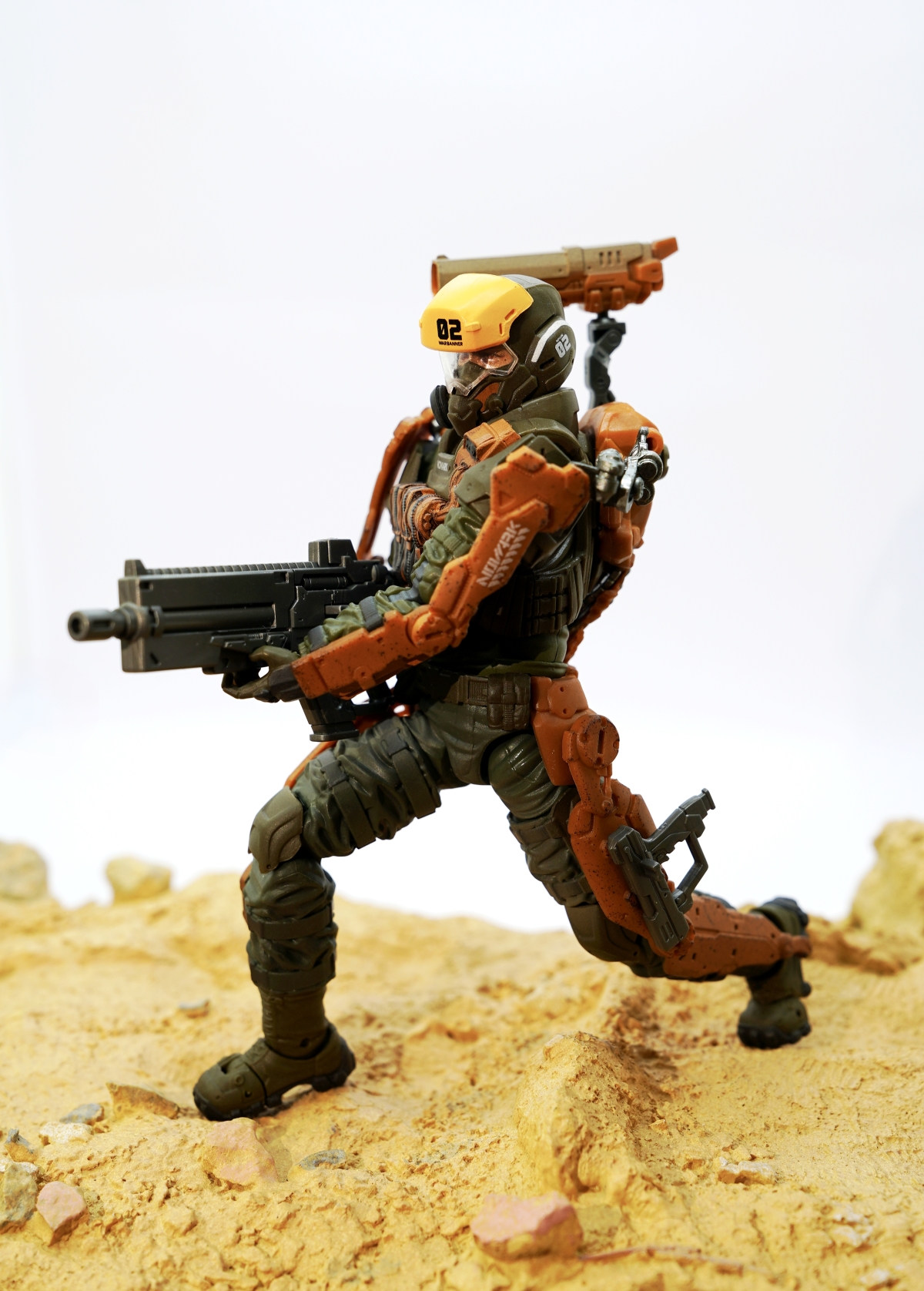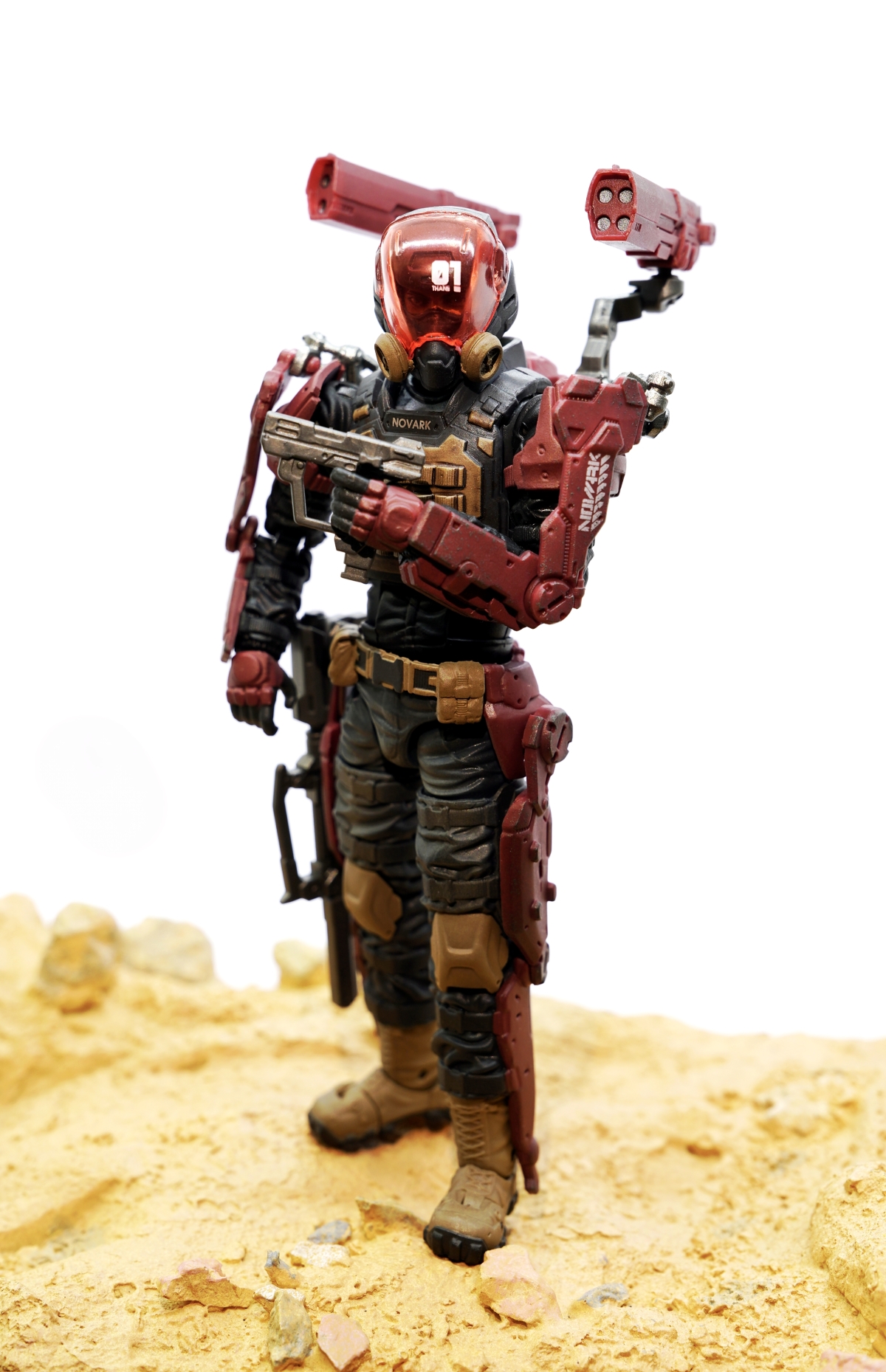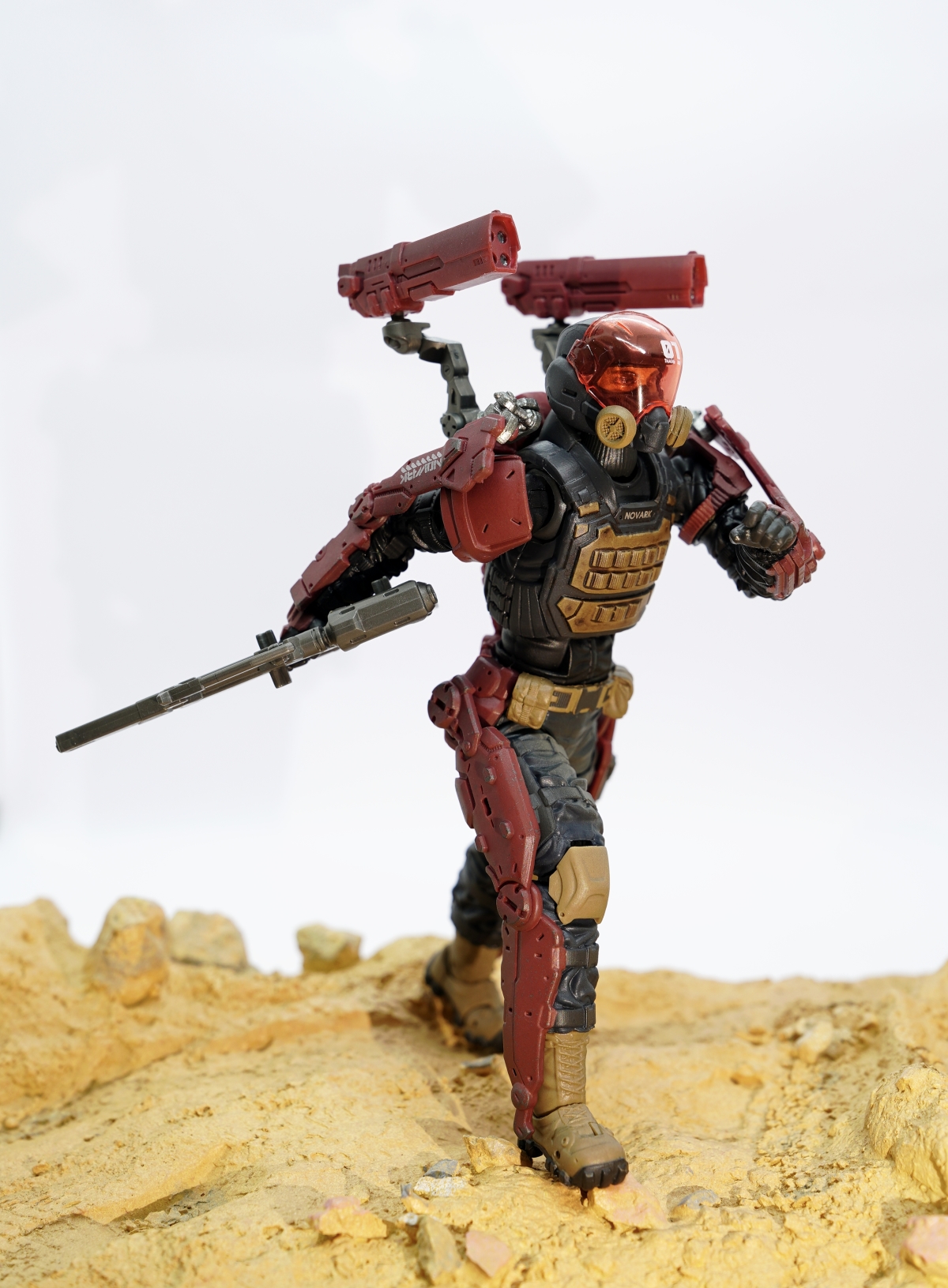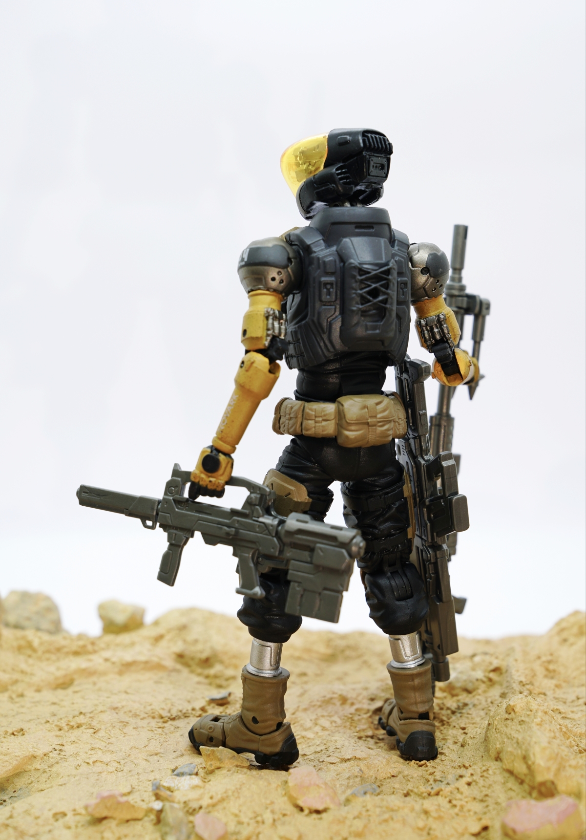 外型非常吸睛,整體感覺是類似美玩的素體,所有部件都是軟膠製,所以把玩時十分安全。雖然只是港幣 250 元左右,但他依然包括了可脫著式強化外骨骼,多樣的武器等等提升玩味的點子!而最驚喜的是部分款式的頭盔同樣是可脫的,把玩時的感覺和美玩相近。主體部分有塗裝之餘亦有微量舊化,可動性不俗。撇除成本,個人建議素體上可以參考日系 SHF!另外手型方面,除了持槍手之外希望多送一點造型手,擺姿勢時會更加得心應手!另外背部外骨骼附加裝置組合時不太順暢。我個人將柱身位削短才可以完美地組合。老實說,這個價錢有這個質素真的沒有什麼話說,完美地將酸雨的軍武風格系列提升至另外一個層次!喜歡 Acid Rain 或近現代軍武風的朋友真的不要錯過!