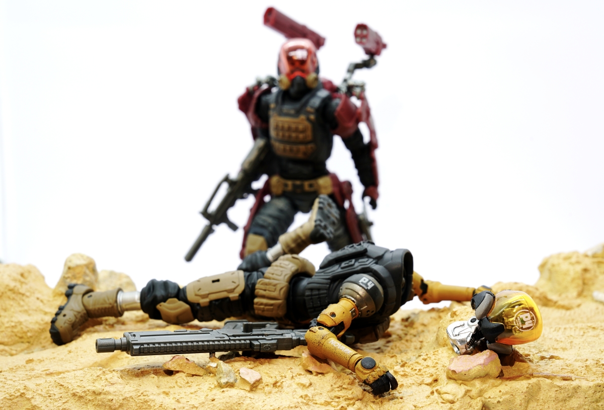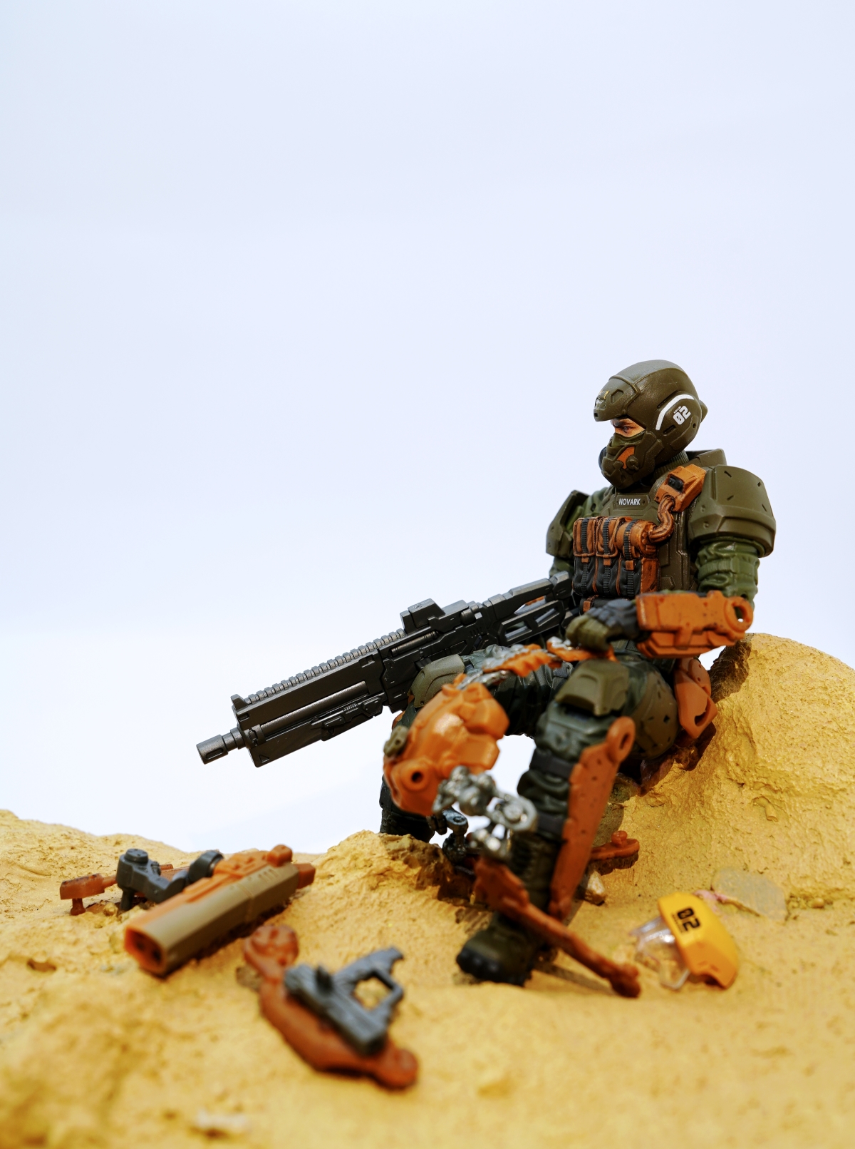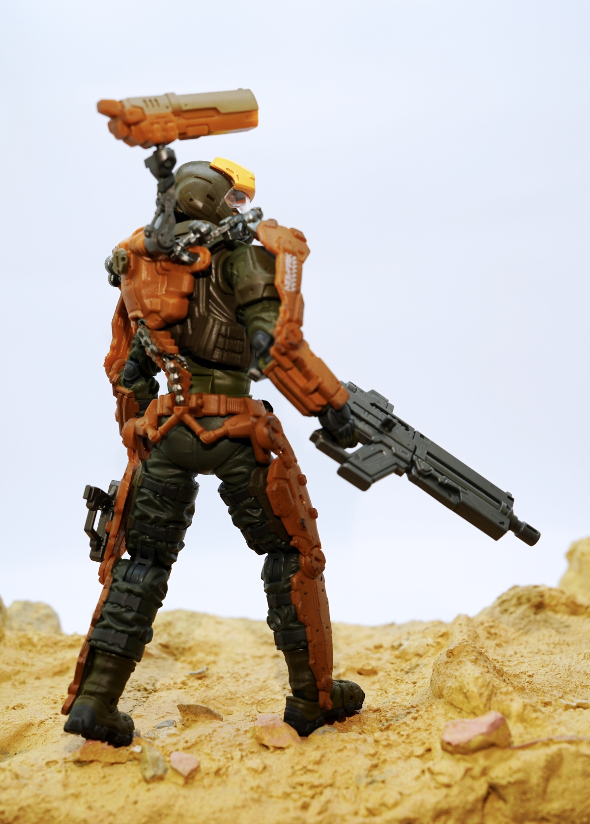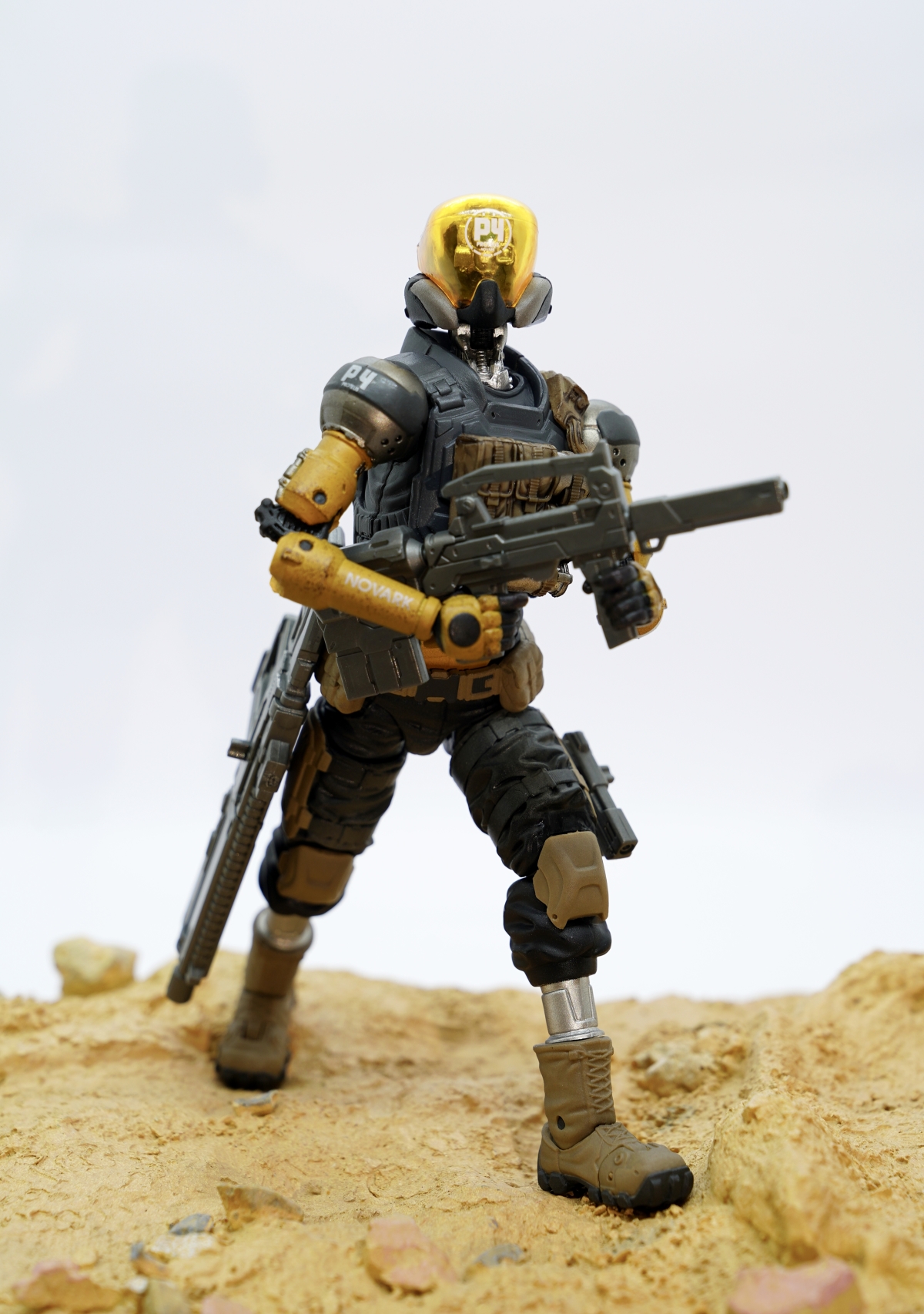 外型非常吸睛,整體感覺是類似美玩的素體,所有部件都是軟膠製,所以把玩時十分安全。雖然只是港幣 250 元左右,但他依然包括了可脫著式強化外骨骼,多樣的武器等等提升玩味的點子!而最驚喜的是部分款式的頭盔同樣是可脫的,把玩時的感覺和美玩相近。主體部分有塗裝之餘亦有微量舊化,可動性不俗。撇除成本,個人建議素體上可以參考日系 SHF!另外手型方面,除了持槍手之外希望多送一點造型手,擺姿勢時會更加得心應手!另外背部外骨骼附加裝置組合時不太順暢。我個人將柱身位削短才可以完美地組合。老實說,這個價錢有這個質素真的沒有什麼話說,完美地將酸雨的軍武風格系列提升至另外一個層次!喜歡 Acid Rain 或近現代軍武風的朋友真的不要錯過!