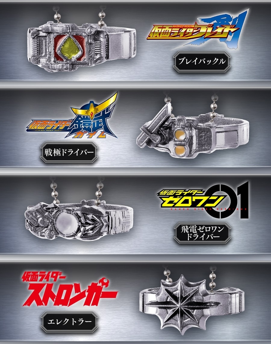 繼先前在第一彈、第二彈、第三彈和第四彈推出一號、Decade、555、電王、OOO 等十六位熱門騎士後,本次的「Ringcolle! DX 假面騎士5」再度將四款假面騎士變身腰帶製作為戒指造型,收錄假面騎士劍的劍腰帶(ブレイバックル)、假面騎士鎧武的戰極驅動器(戦極ドライバー)、假面騎 ZERO-ONE 的飛電 ZERO-ONE 驅動器(飛電ゼロワンドライバー)以及假面騎士 Stronger 的變身腰帶蓄電者(エレクトラー)!轉蛋採用合金材質製作,並以樹脂還原部分腰帶上發光處代表性的顏色,增添整體的細緻度,且每款腰帶都附有球練,讓各位玩具人可以作為吊飾收藏!