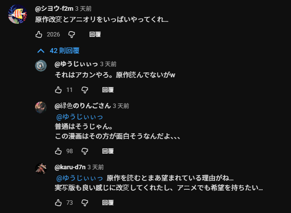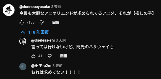 不過這次宣傳影片底下留言,的確湧入粉絲直呼:「希望多改編一點原作劇情,加入動畫原創劇情」、「現在最被期待能大膽做出原創結局的動畫,就是【我推的孩子】」、「像這樣等級的作品居然會有人期待動畫原創結局,這真的前所未聞」,這些留言還獲得大量的讚。
