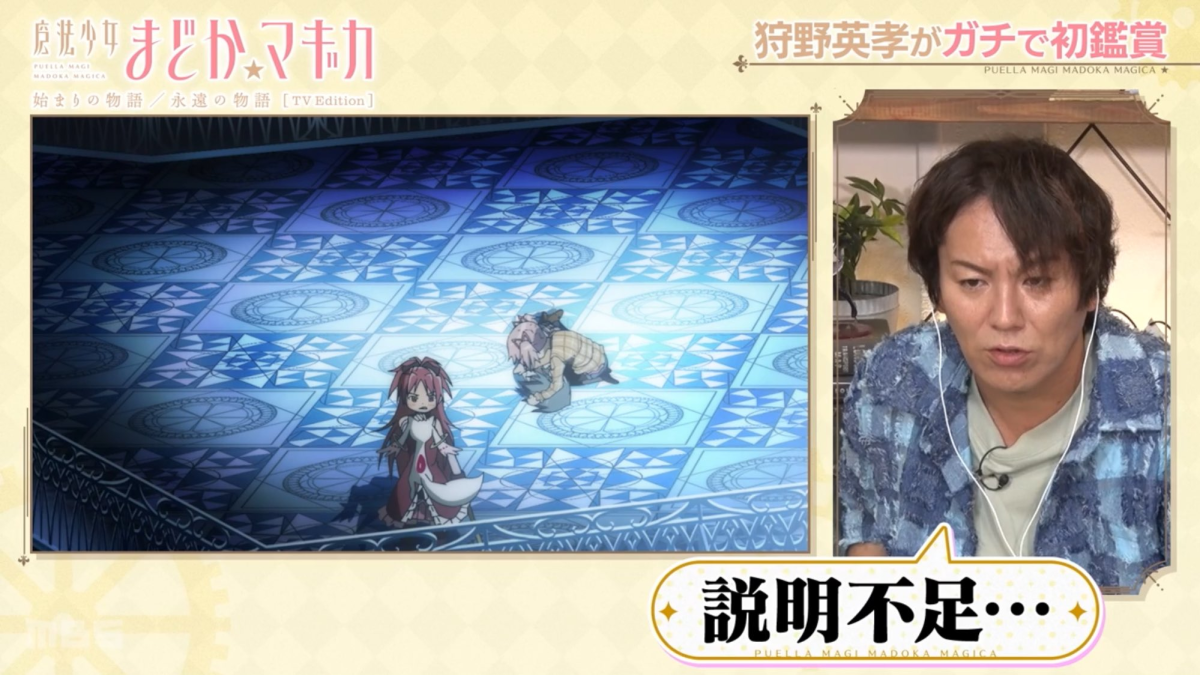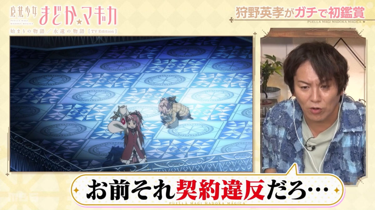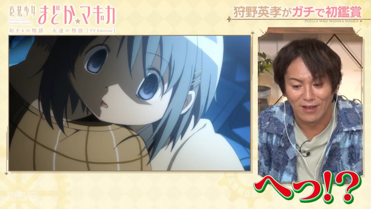 近期日本電視播出《魔法少女小圓 起始的物語/永遠的物語 TV版》,把劇場版〈前篇〉與〈後篇〉重編成11集電視版播出,請來從沒看過該系列的藝人狩野英孝擔任副音聲講評。