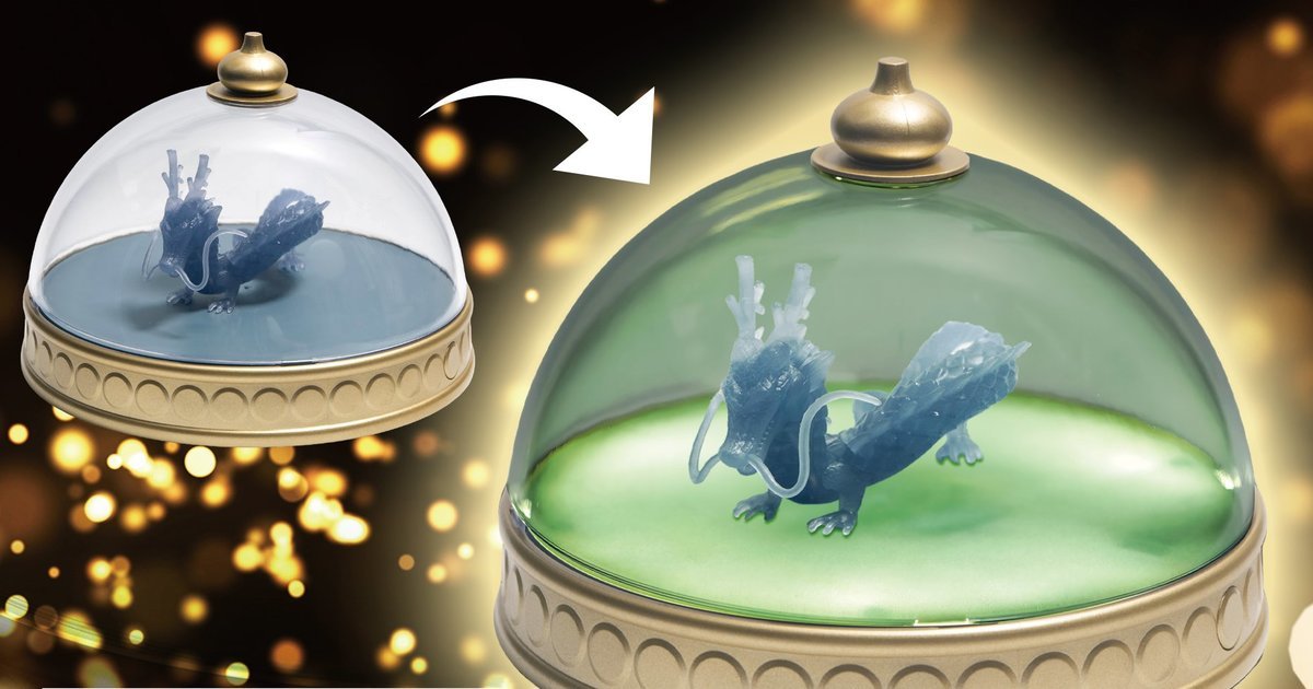 BANPRESTO景品「神龍模型 房間小夜燈」,以波波先生修復的神龍模型為造型,在約13公分的尺寸中還原透明的半圓蓋與裡面小小的神龍,底座會發出柔和的光芒,照亮神龍模型;神龍模型本身才是採用蓄光材質製作,在黑暗中也會發出神秘的亮光~雖然官方名稱是房間小夜燈,但請玩具人不要對這個燈的照明功能有太高的期待喔~