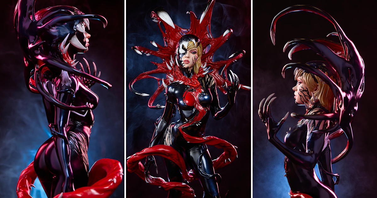 本作是依照韓國漫畫家 Inhyuk Lee 所繪製、2021 年漫畫《King in Black: Gwenom vs. Carnage》#1 的變體版封面為題設計,在 56 公分的高度中打造出與黑色共生體相互結合的幽靈蜘蛛(Ghost-Spider)。原先經典的服裝特色「連帽外套」在被共生體侵佔之後化身為彷彿具有生命與獨立自我意識、張開大口的異星捕蠅草!