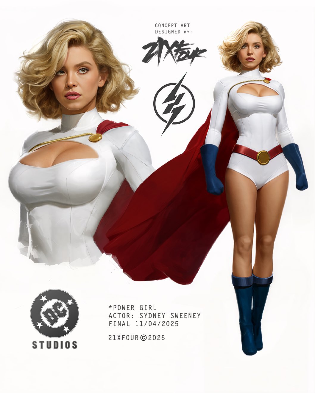 好萊塢新生代人氣女星席妮·史威妮(Sydney Sweeney)近日再度成為DC粉絲熱議焦點。隨著概念藝術家21XFour(@21xfour)公開她化身「超能女孩」(Power Girl)的最新粉絲創作圖,這位《蜘蛛夫人》(Madame Web)女星再度被視為最有潛力接棒超級英雄宇宙的代表人物。