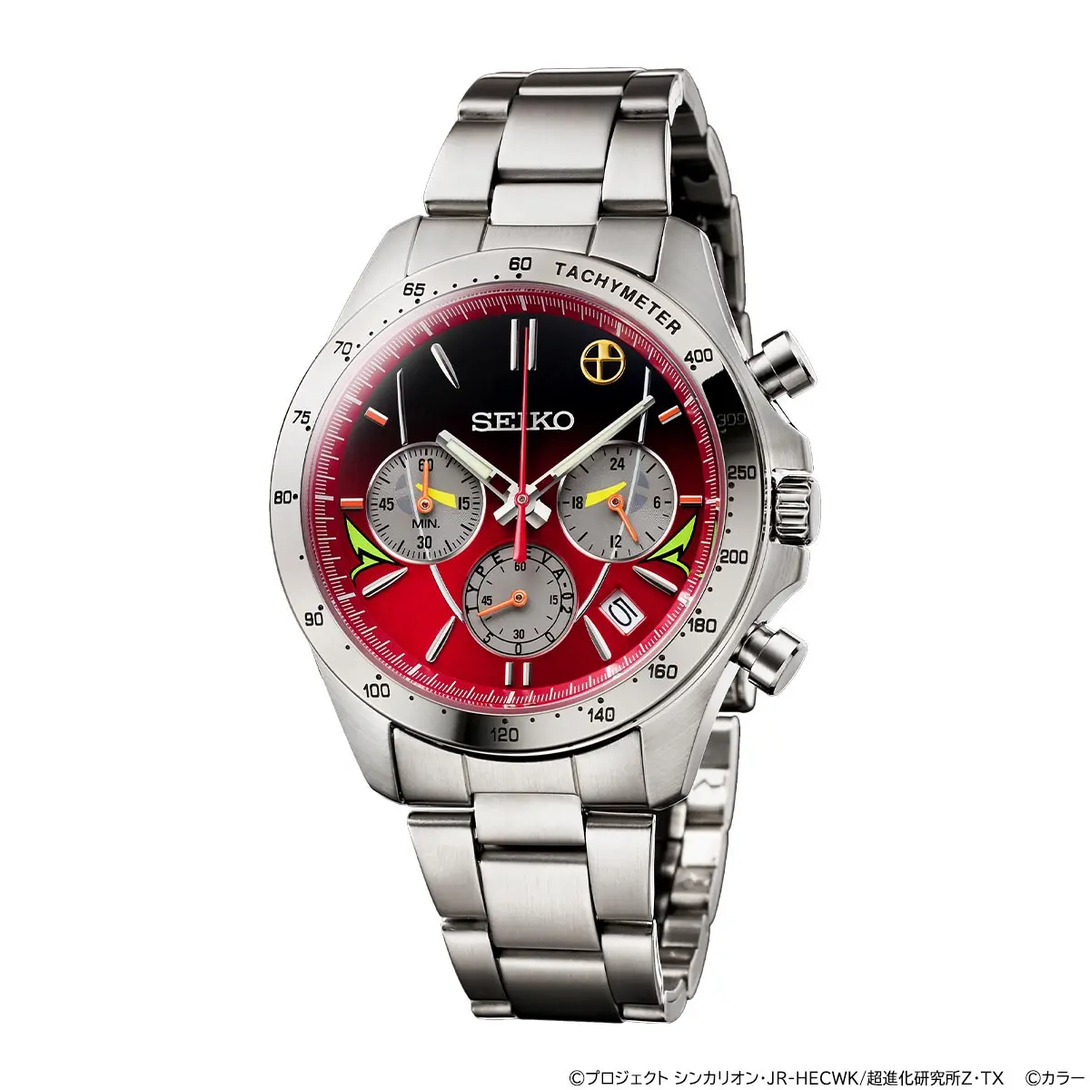這款手錶錶面設計靈感來自從正面看過去的 500 TYPE EVA-02,新幹線駕駛艙的黑色前擋玻璃,加上讓人聯想到 EVA 2 號機的鮮紅色漸層,超有存在感。