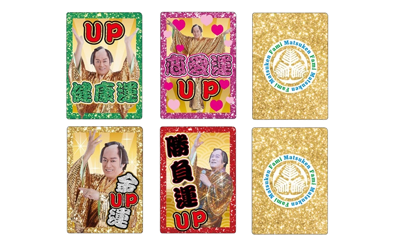這次推出的《全家松健福袋》包含多樣原創限定品:全家 × 松平健合作設計的「松平健金色不鏽鋼隨行杯」、超有存在感的「松平健巨型撲克牌」、充滿福氣的「松平健金光閃閃餐墊」、價值3000日圓的優惠券冊以及有機率抽中特別獎品的「開運御籤卡」。